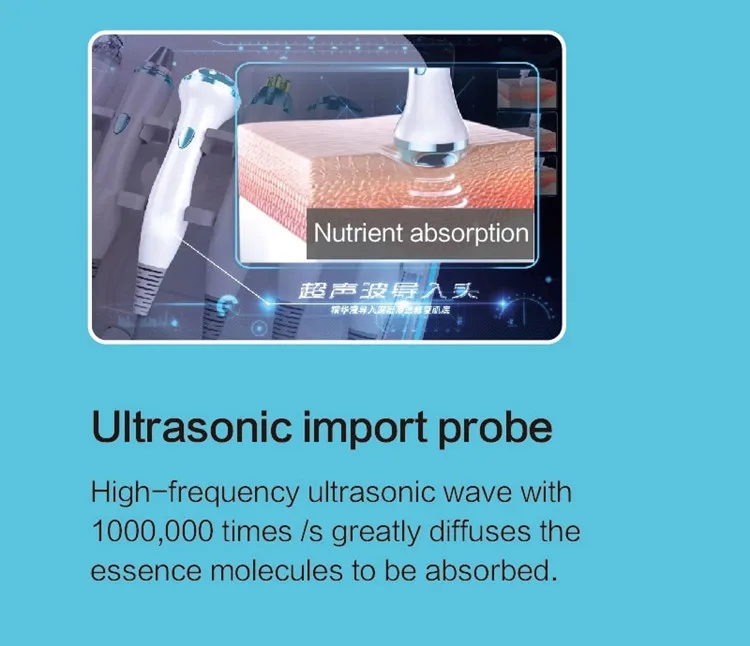 Ультразвуковая головка: питательные вещества макромолекул преобразуются в Небольшие молекулы в результате действия ультразвука, что делает кожу более легкой для поглощения.