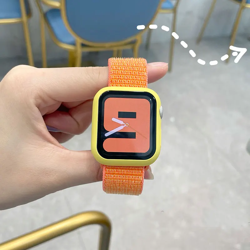Стекло + чехол + ремешок для Apple Watch band 44 мм 40 мм 38 мм 42 мм 44 мм нейлоновый ремешок для часов iWatch 3 4 5 6 se band