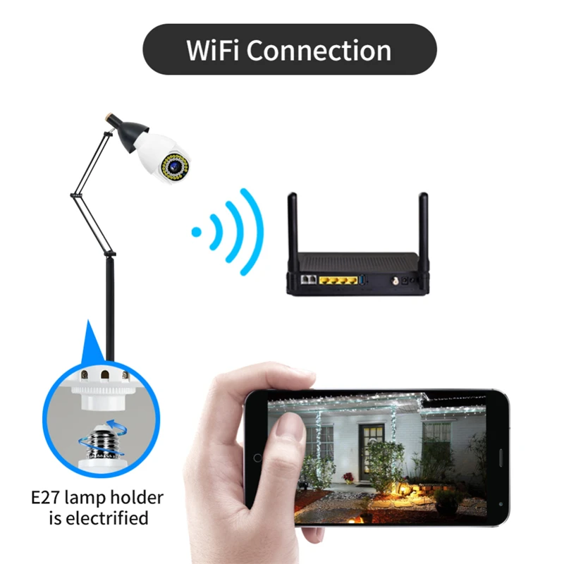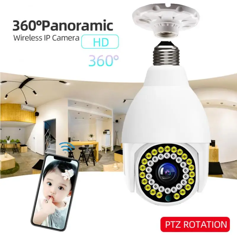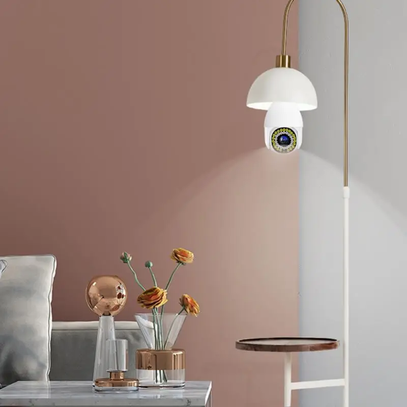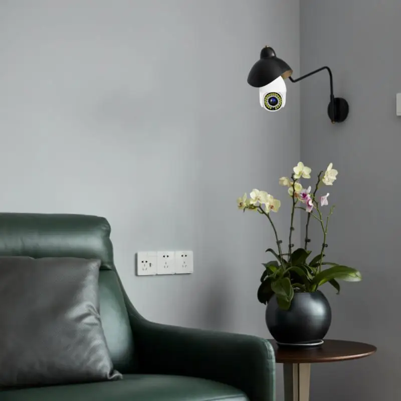 Держатель лампы-это универсальный E27 держатель лампы, просты в установке, двухдиапазонный, Wi-светильник поддержка светильник ing, 360 градусов Панорамное вращение угол зрения, мобильный телефон Удаленный просмотр Wi-Fi соединение, интеллектуальное обнаружение движения человека и аномальная сигнализация экрана, камера, когда кто-то ломается, обнаруживается, может активно звучать сигнал тревоги и мигать, Интеллектуальный двусторонний голосовой Интерком в режиме реального времени, 2 миллиона пикселей высокой четкости, максимальная поддержка карты памяти 128G, поддержка облачного хранилища и хранения tf-карт.