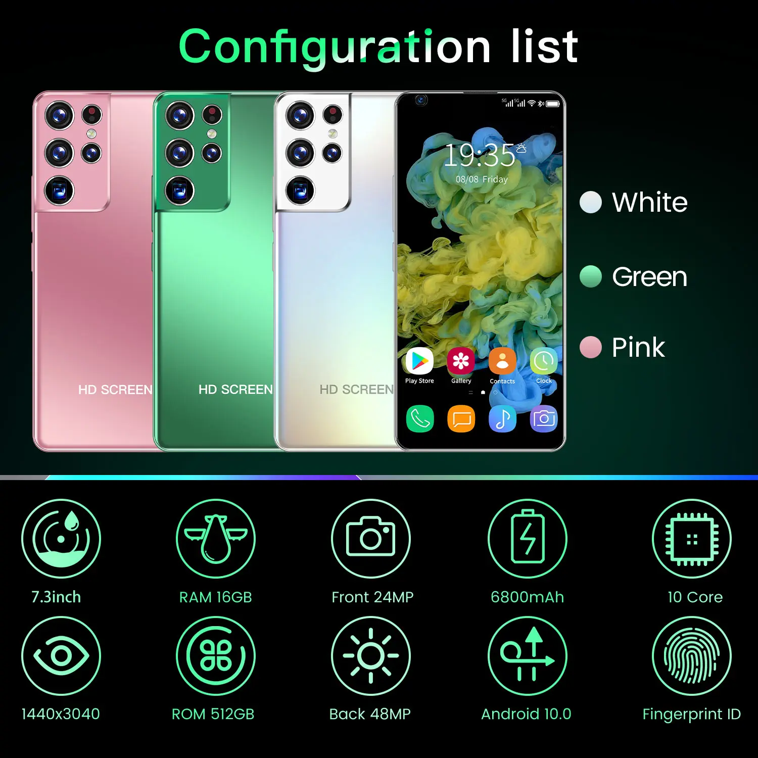 Смартфон S21, 7,3 дюйма, 1440x3040, 16 + 512 ГБ, 6800 мАч