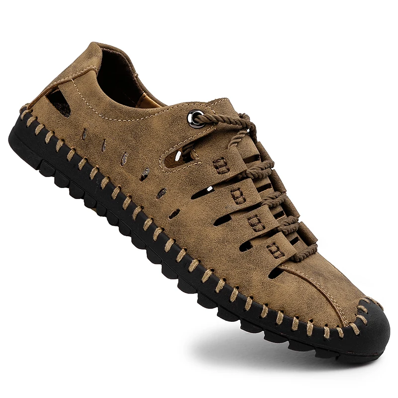 Мужские пляжные туфли из воловьей кожи, коричневые повседневные туфли с перфорацией, обувь для летнего сезона 2019