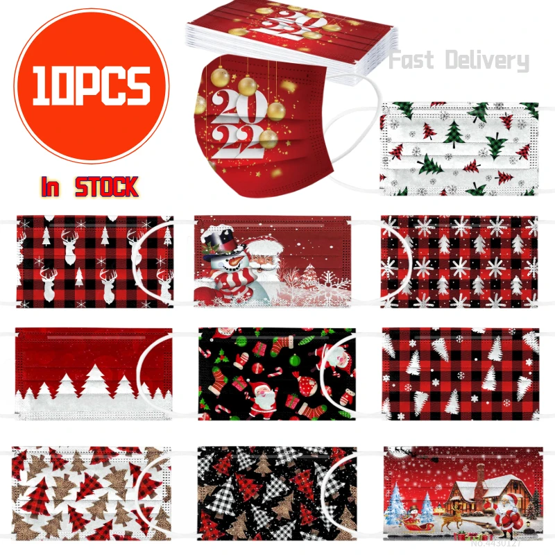 Рождественские одноразовые маски, 10 шт маски для лица, защита фильтра дляДля мужчин и женщин