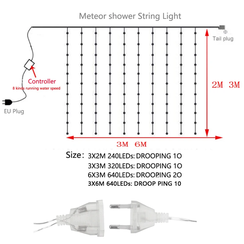 Страна: US Emitting Color: Blue Style: 3X2m 240LEDs Wattage: 220V EU Plug Доставка: Standard Shipping 19.09.2022