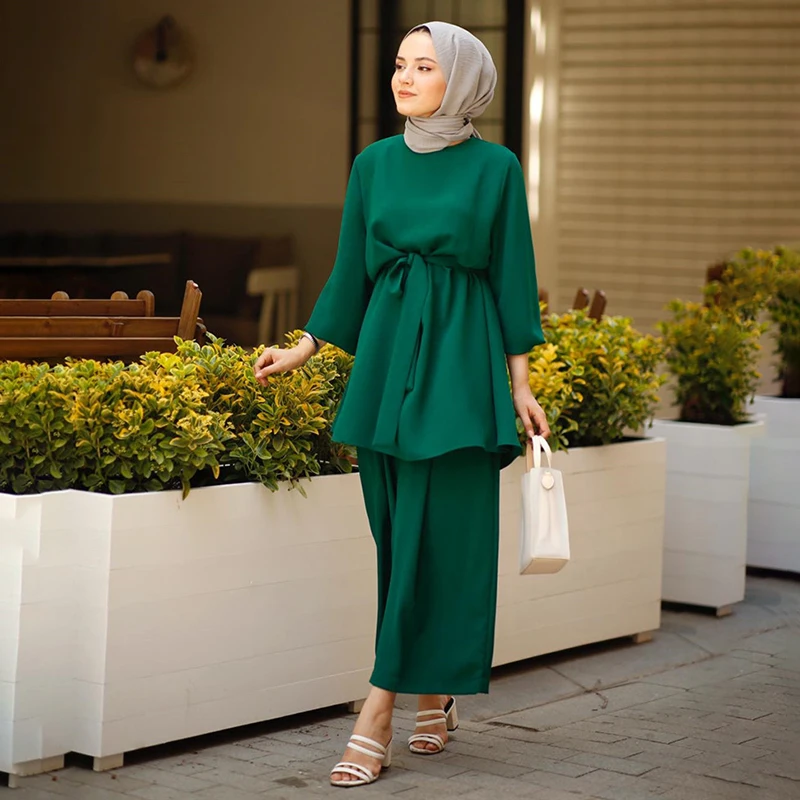 Eid Mubarak Abaya Турция Hijab 2 шт. Женская мода комплекты для мусульман платье Caftan caftans Исламская одежда Abayas Musulman