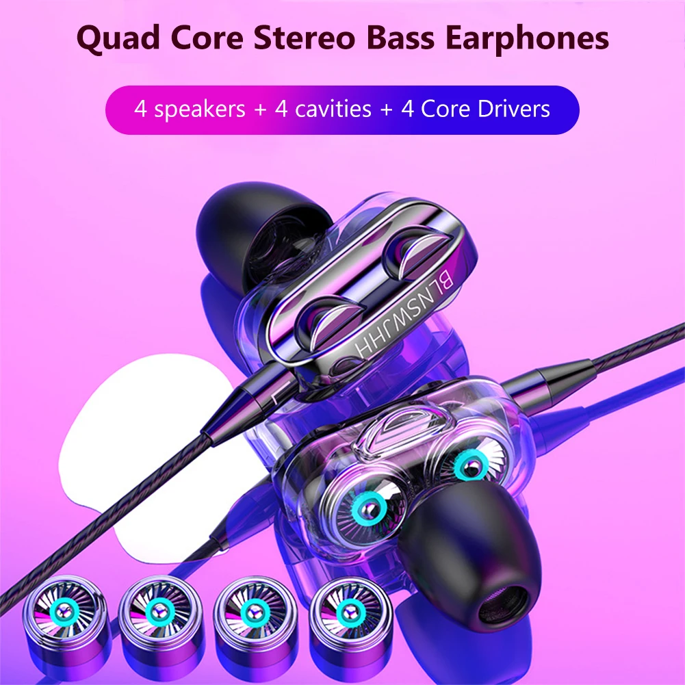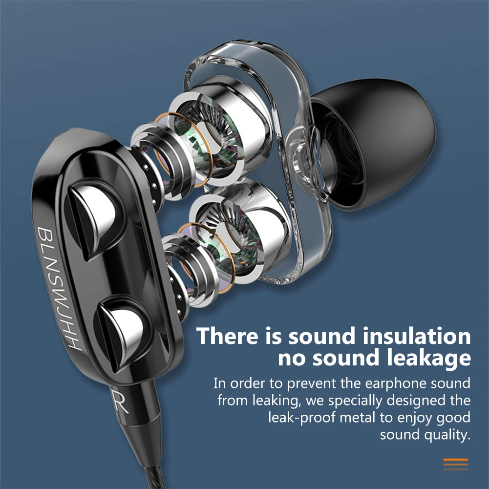 Наушники-вкладыши 3D стерео с двойным драйвером, музыкальные наушники с сильными басами, Hi-Fi спортивные наушники-вкладыши, наушники для смартфона с проводной настройкой и микрофоном