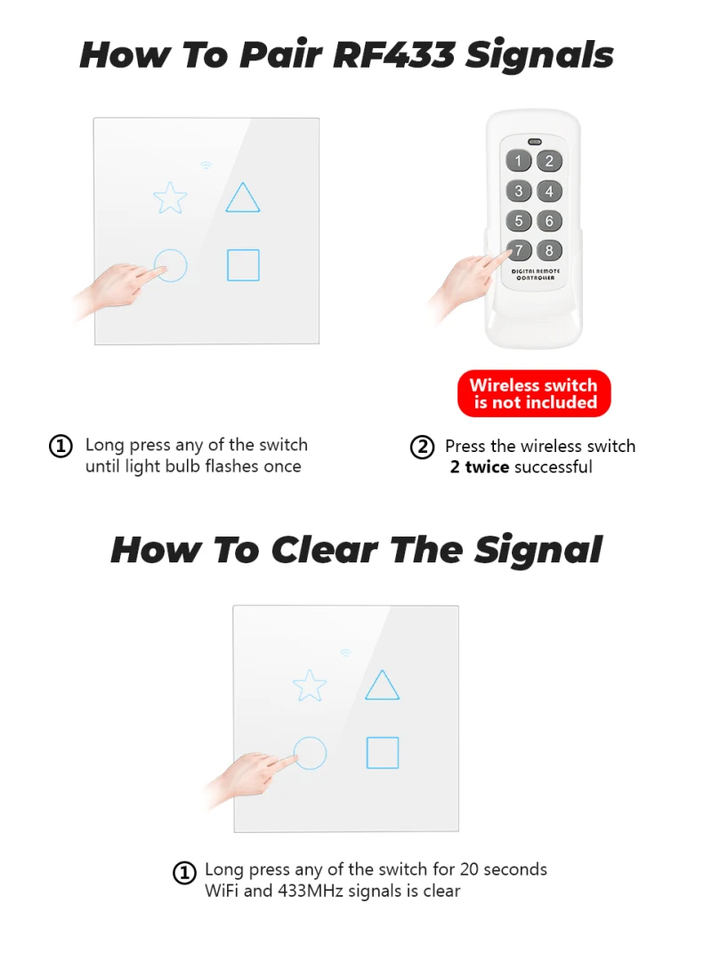 【Четыре метода управления 】 управление приложением + Голосовое управление + 433 МГц RF беспроводной переключатель + переключатель сенсорного управления