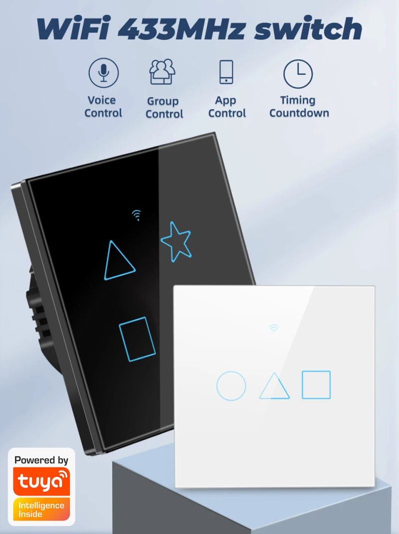 Выключатель настенный сенсорный Tuya с поддержкой Wi-Fi и 433 МГц, 123 клавиши