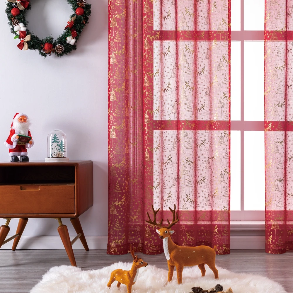 Рождественские тюлевые шторы LISM, 2 цвета, для гостиной, спальни, ...