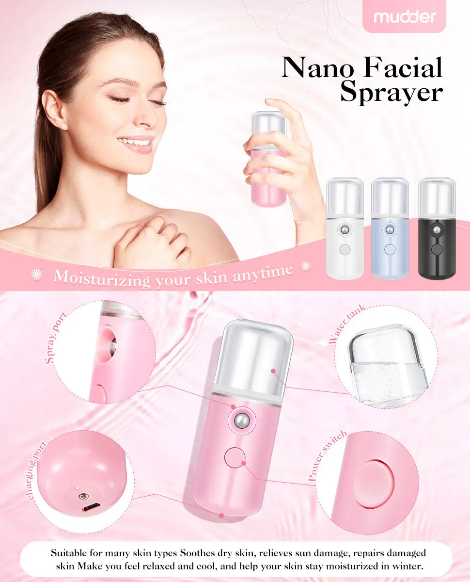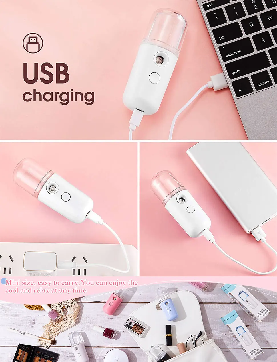Мини-распылитель для лица с нанотуманом, USB распылитель, увлажнитель, перезаряжаемый распылитель для лица, распылитель для лица, инструменты для ухода за кожей