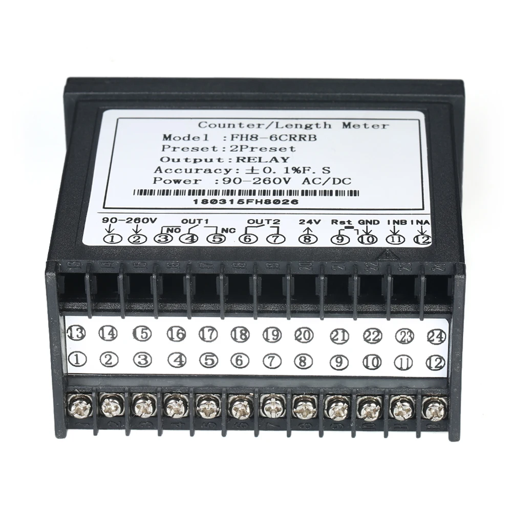 Это цифровой счетчик с двойным дисплеем, который может использоваться в качестве промышленного счетчика для подсчета количества объектов в одной партии и производственной линии, а также может использоваться в качестве счетчика длины. Широко применяется в производстве машин, светильник, электроники, продуктов питания, посылка, кожи, ткацкой промышленности для подсчета, длины, подсчета партии. Особенности: Двойной 6 цифр светильник-светодиод Дисплей для четкого восприятия информации. NPN и датчик PNP вход переключаются. Включает в себя 4 вида входного режима, 6 видов выходного режима для опции. Вход и выход опционально изолированы. Диапазон подсчета: -199999 ~ 999999; Предустановленный диапазон: 0,00001-999999. Можно установить значение сигнала тревоги для релейного выхода. Может быть соединен с кодером, переключателем приближения, фотоэлектрическим переключателем, оптическим датчиком, лазерным датчиком и т. д. Широко применяется в химической, машинной промышленности, светильник и т. Д. Характеристики: Материал: АБС-пластик Напряжение: 90 ~ 265 В AC/DC Вспомогательная мощность: 24 В постоянного тока Вход: импульсный сигнал: квадратная волна и Синусоидальная волна: 5 В ≤H≤ 30 в 0 ≤L≤ 2 в вверх по краям Входное сопротивление: ≥ 10 кОм Скорость подсчета: 30/5000CPS Диапазон подсчета: -199999 ~ 999999 Предустановленный диапазон: 0,00001-999999 Скорость отклика: переключатель типа вход 0 ~ 5000 Гц, инкрементный кодер вход 0 ~ 2000 Гц Точность: ± 0.1% Ф. С. Выход: 2 релейных контактных выхода Температура окружающей среды: 0 ~ 50 ℃ Температура хранения: -10 ~ 60 ℃ Влажность окружающей среды: 35 ~ 85% относительной влажности Сопротивление изоляции: ≥ 10 МОм Потребляемая мощность: ≤ 5 Вт Контактная Кромка: вверх по краю Товар Размеры: 9,5*8,5*4,7 см/3,74*3,35 * 1.85in Вес изделия: 167 г/5,89 унций Вес посылка: 203 г/7,16 унций Размер посылка: 11*10,1*5,5 см/4,33*3,98*2,17 дюймов Упаковочный лист: 1 * Счетчик 2 * скобы 1 * Руководство пользователя (на английском языке)