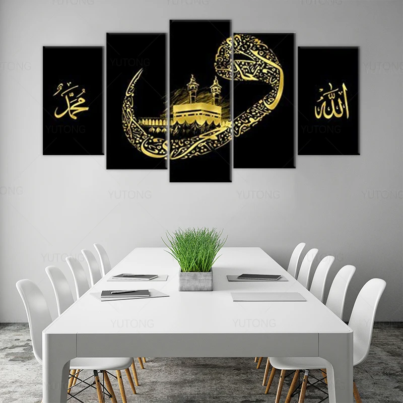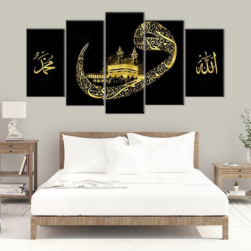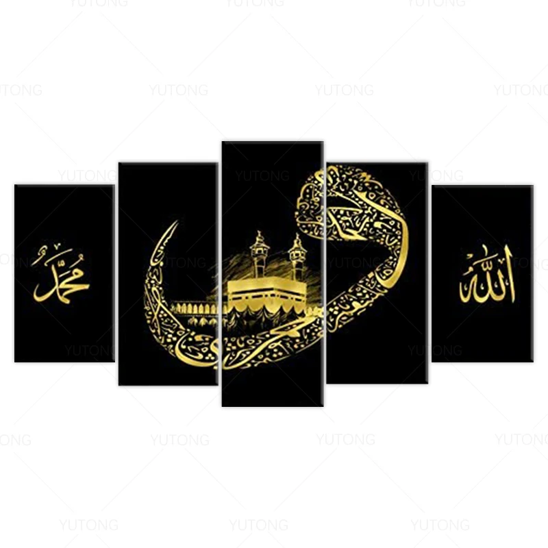 Мусульманская Настенная картина Kabba Kabah, 5 шт., мусульманские плакаты и печать на холсте, картина, домашний декор для гостиной с рамкой