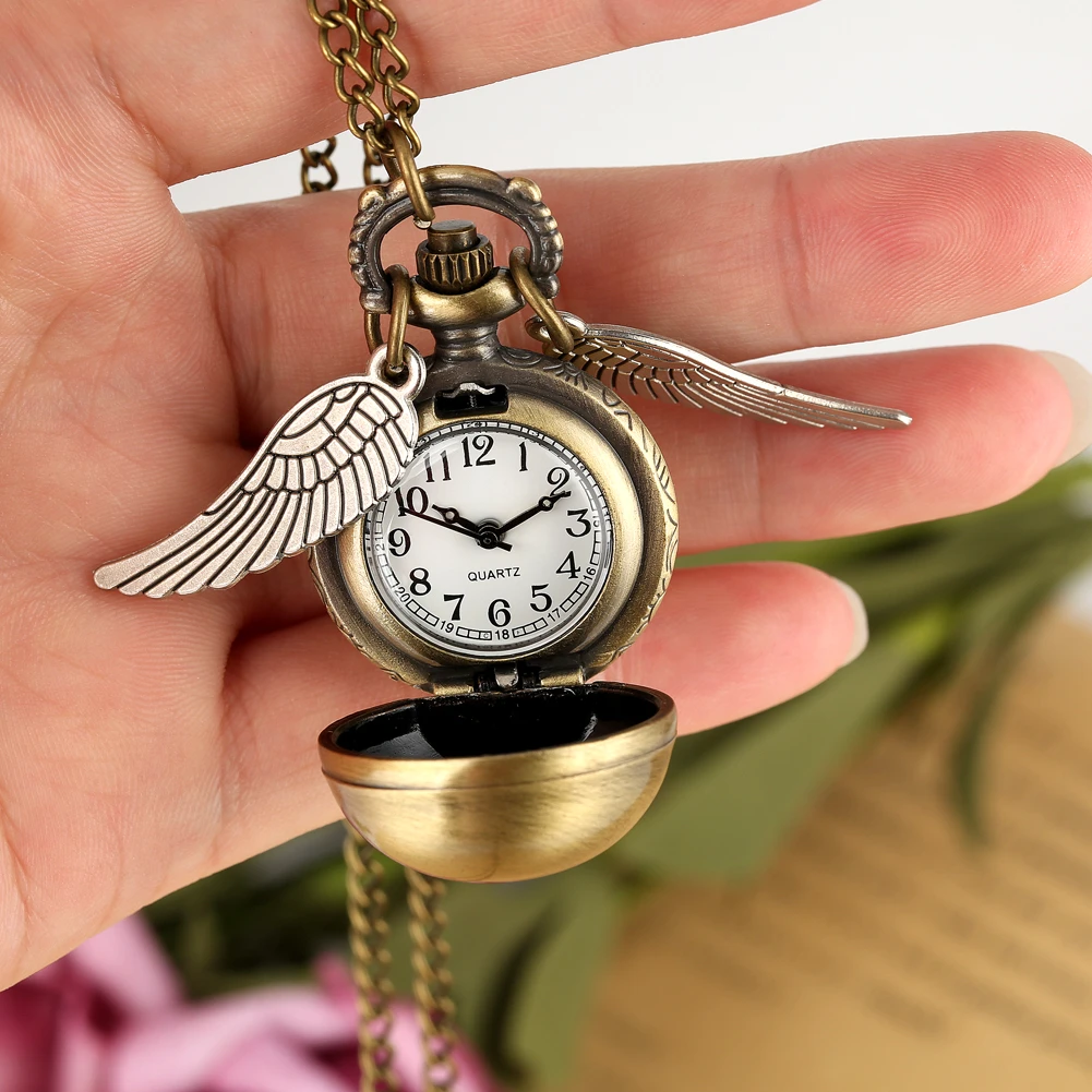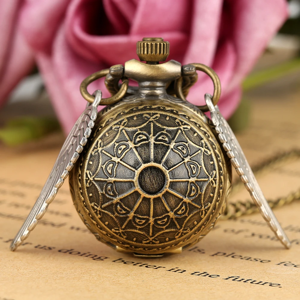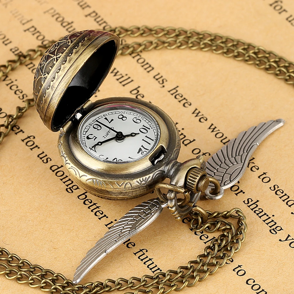 Бронзовые Кварцевые карманные часы с подвеской в виде крыла пера, роскошные часы, винтажные часы-брелок, цепочка, подарок для мужчин и женщин, Прямая поставка