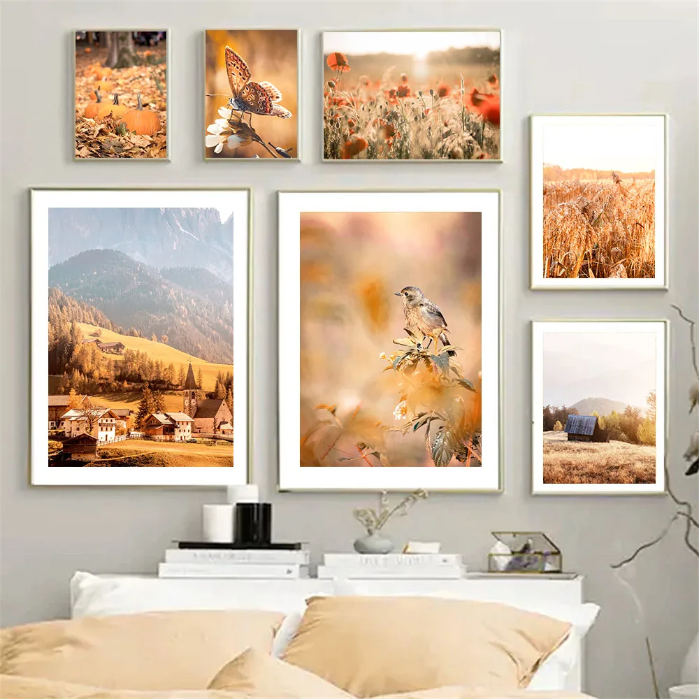 Осенний пейзаж, лесная Гора, настенный художественный холст, постер, рисунок тыквы, рисунок, рисунок, скандинавские настенные картины, декор для гостиной