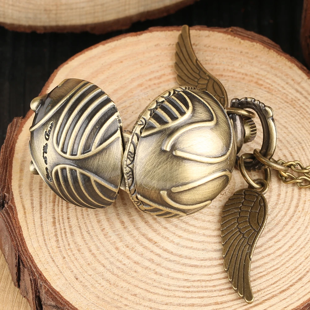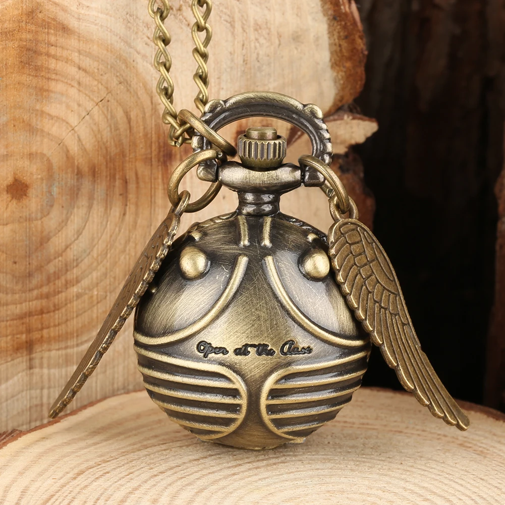 Винтажные кварцевые карманные часы с бронзовым крылом, круглые часы-Флип с серебряным кулоном в виде шара, цепочка для часов, ожерелье, подарок для детей, оптовая продажа