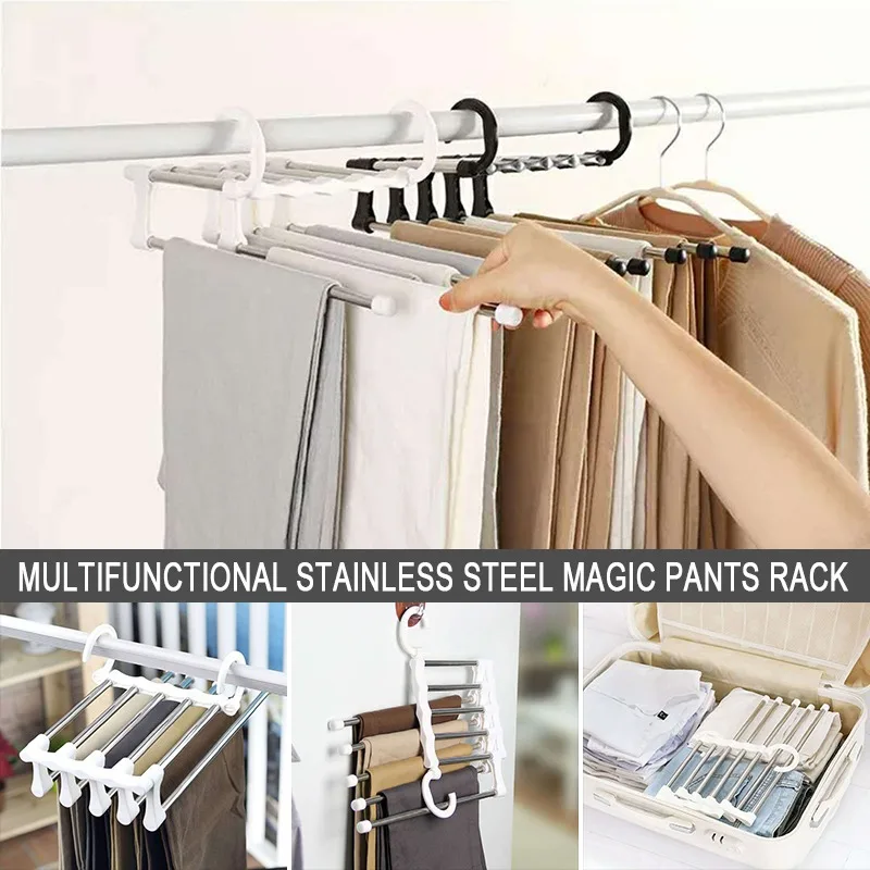 Хит продаж, Новейшие Многофункциональные полки для брюк 5 в 1, вешалки для одежды из нержавеющей стали, Многофункциональная вешалка для гардероба