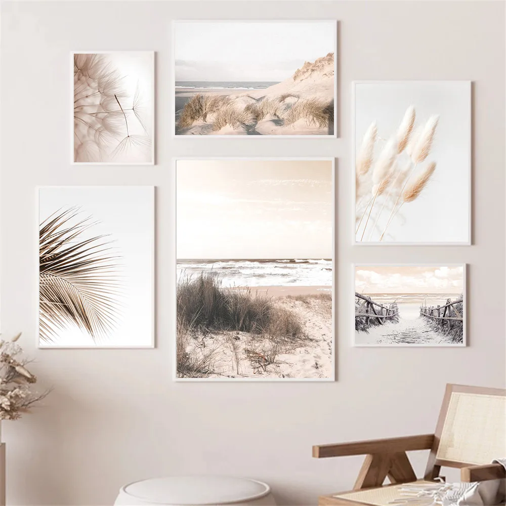 Мост морской пейзаж, холст, живопись, Пляжная трава, тростник, пост...