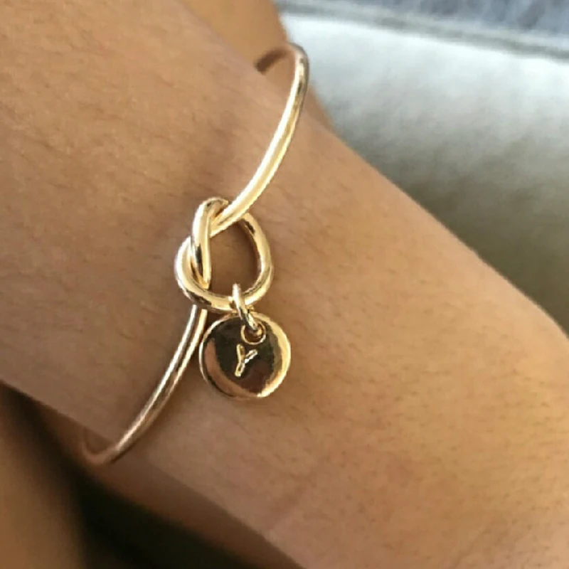 Женский простой браслет с узлом, открытые браслеты с 26 буквами и м...