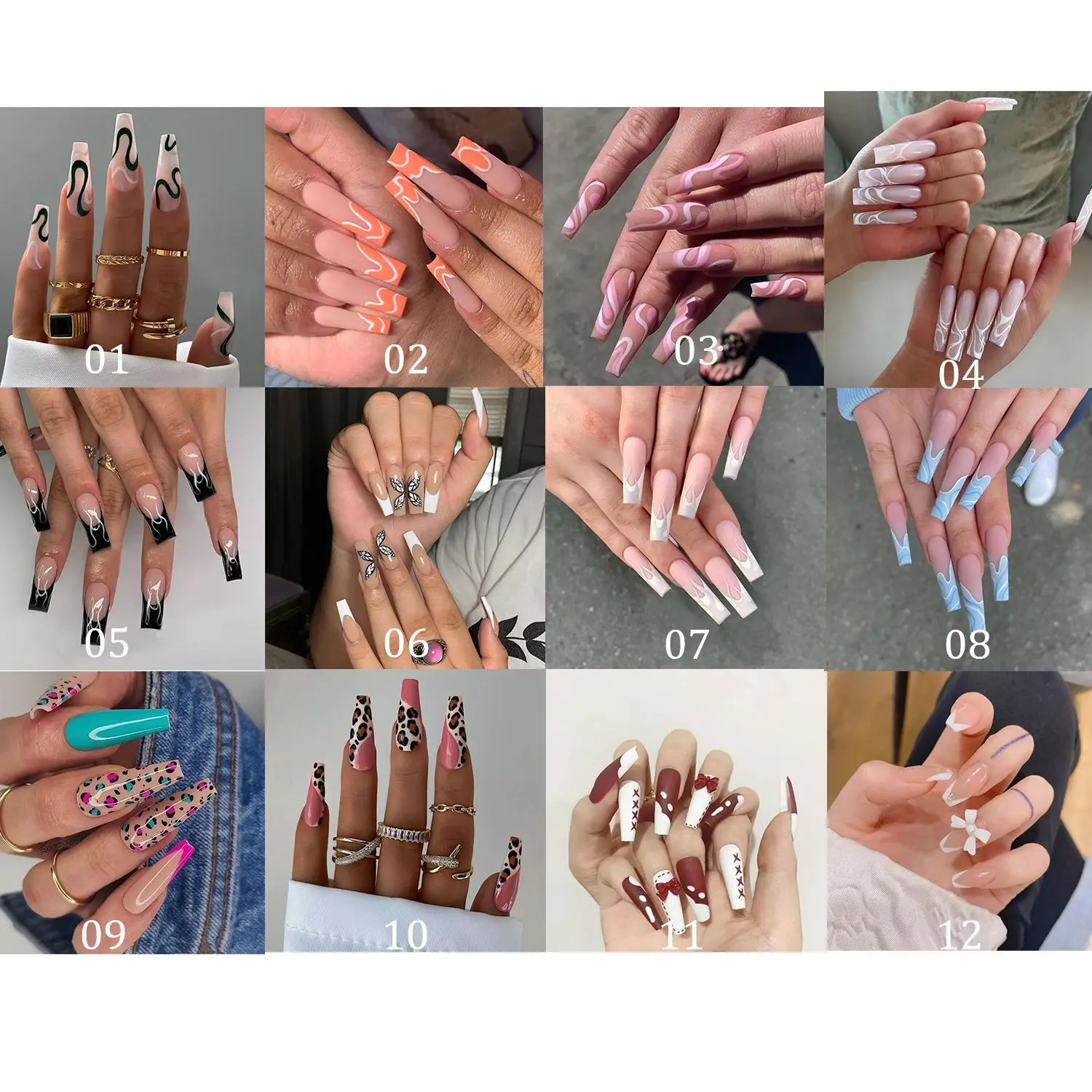 Съемные сверхдлинные гвозди, накладные ногти балерины с дизайном, н...