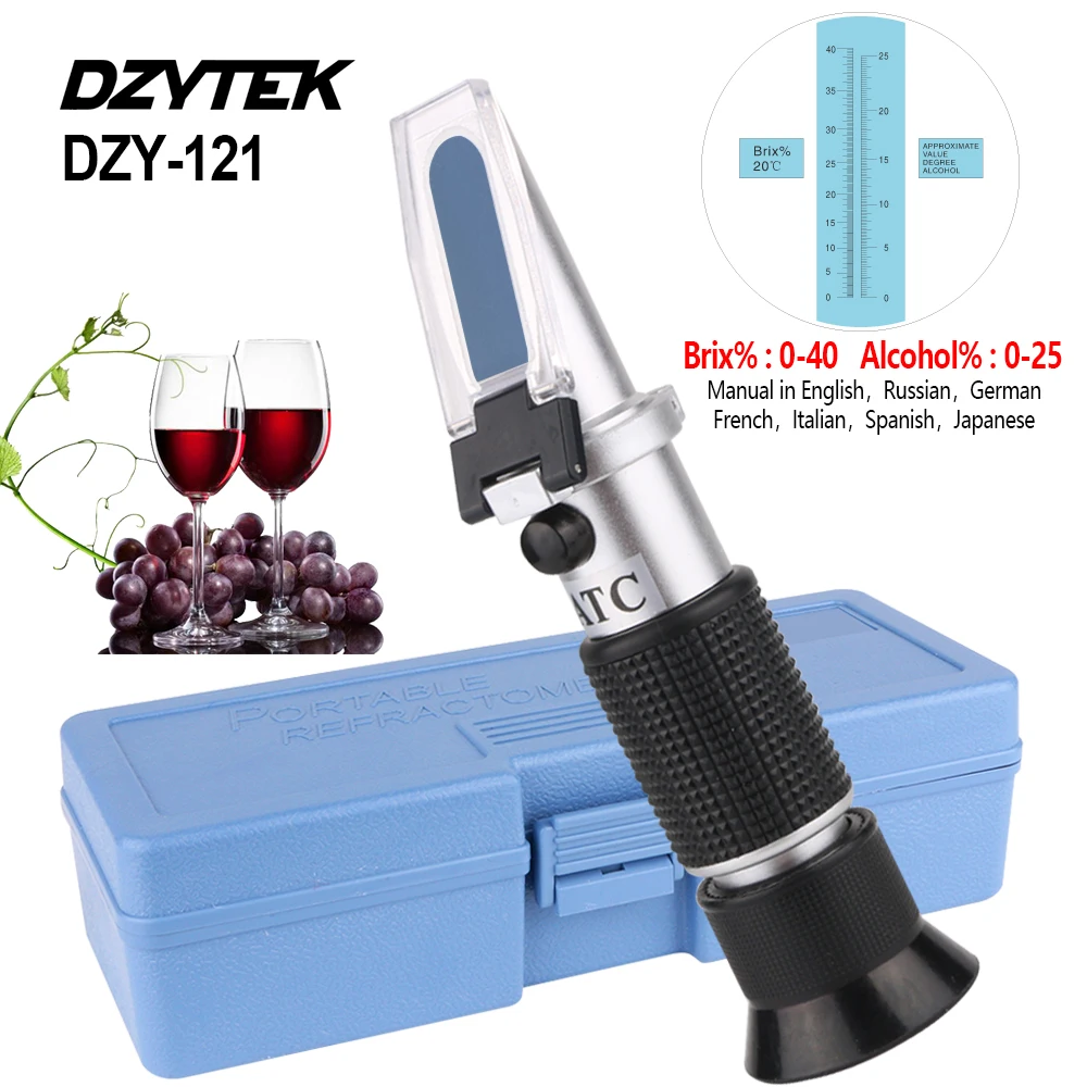 Рефрактометр для виноградного вина, пивоварения, сахара, предсказывающий содержание виноградного сока, алкоголь 0-40% БРИКС 0-25% обмин