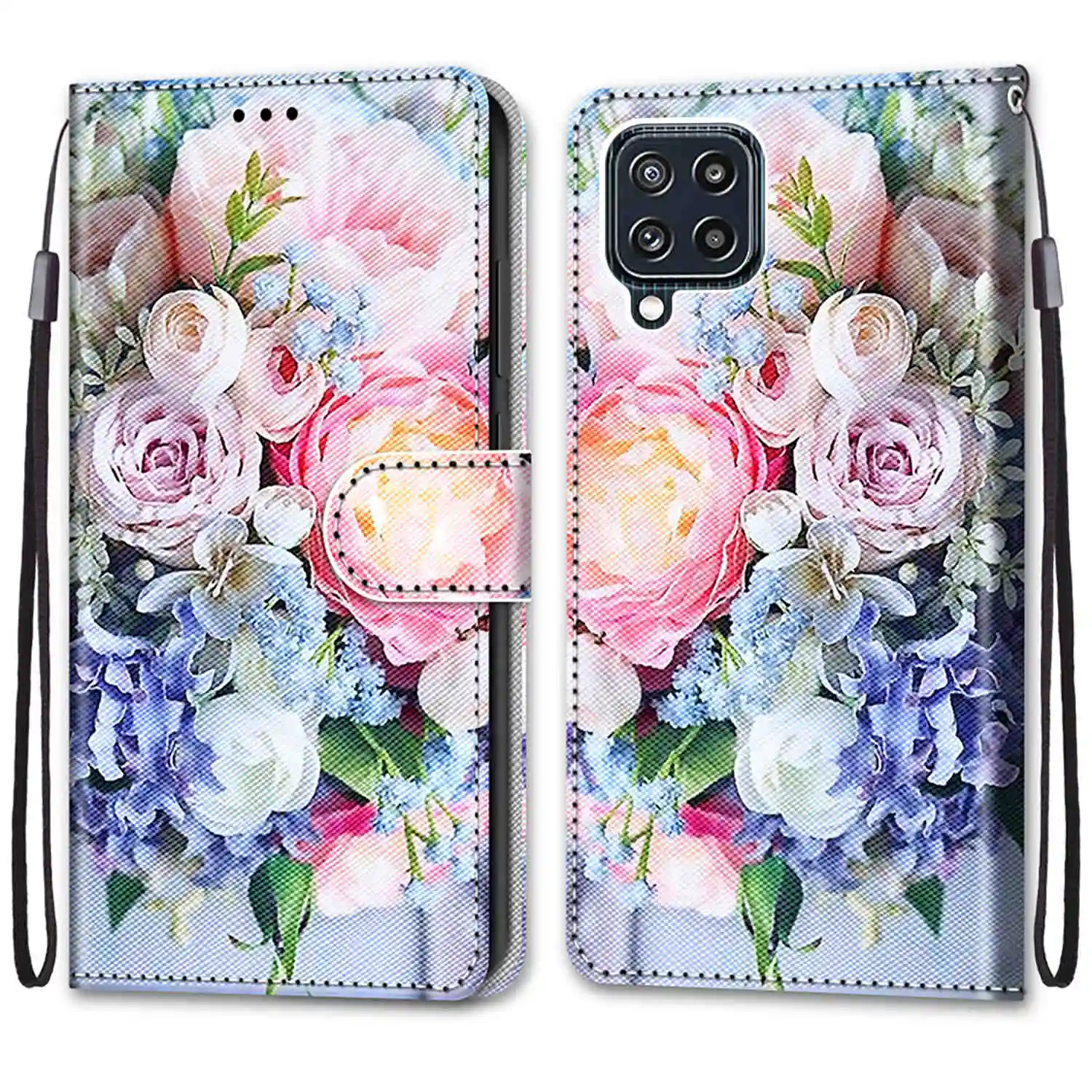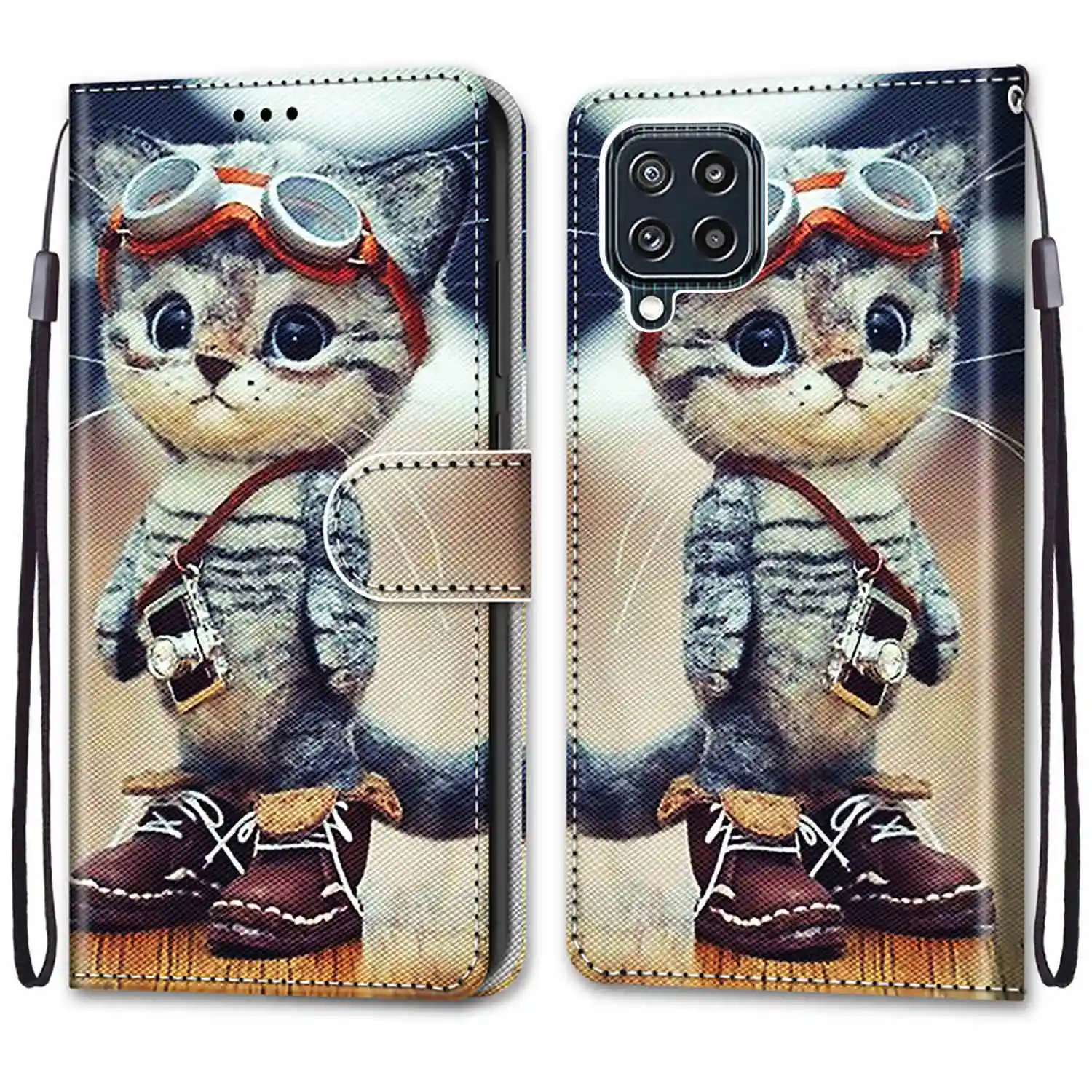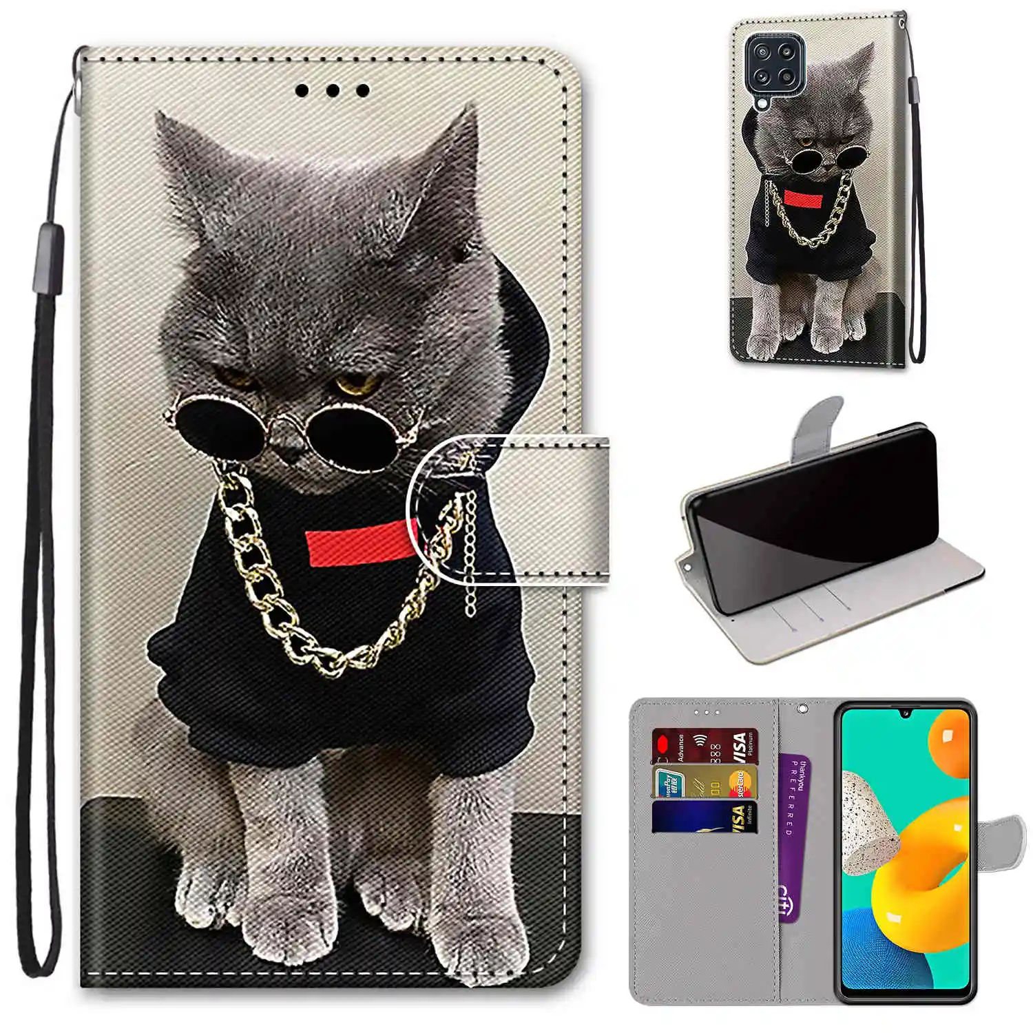 StyleAnimal Cat Flower Pattern Wallet Flip Cover For Samsung Galaxy M32