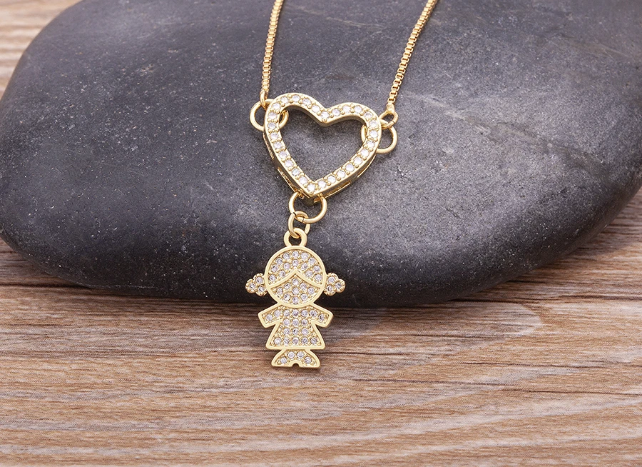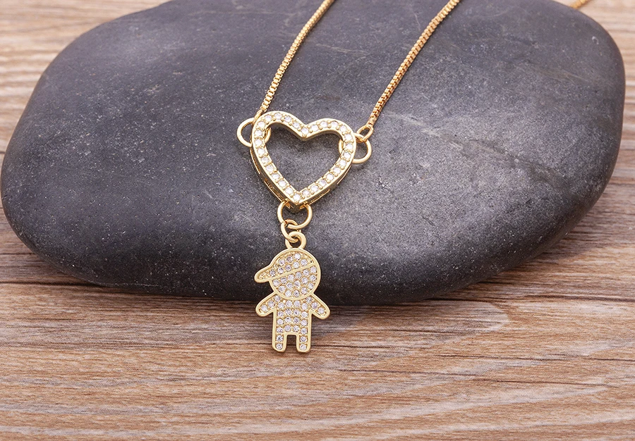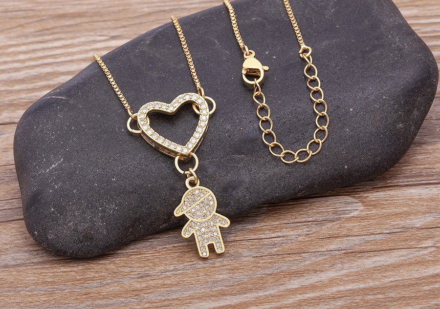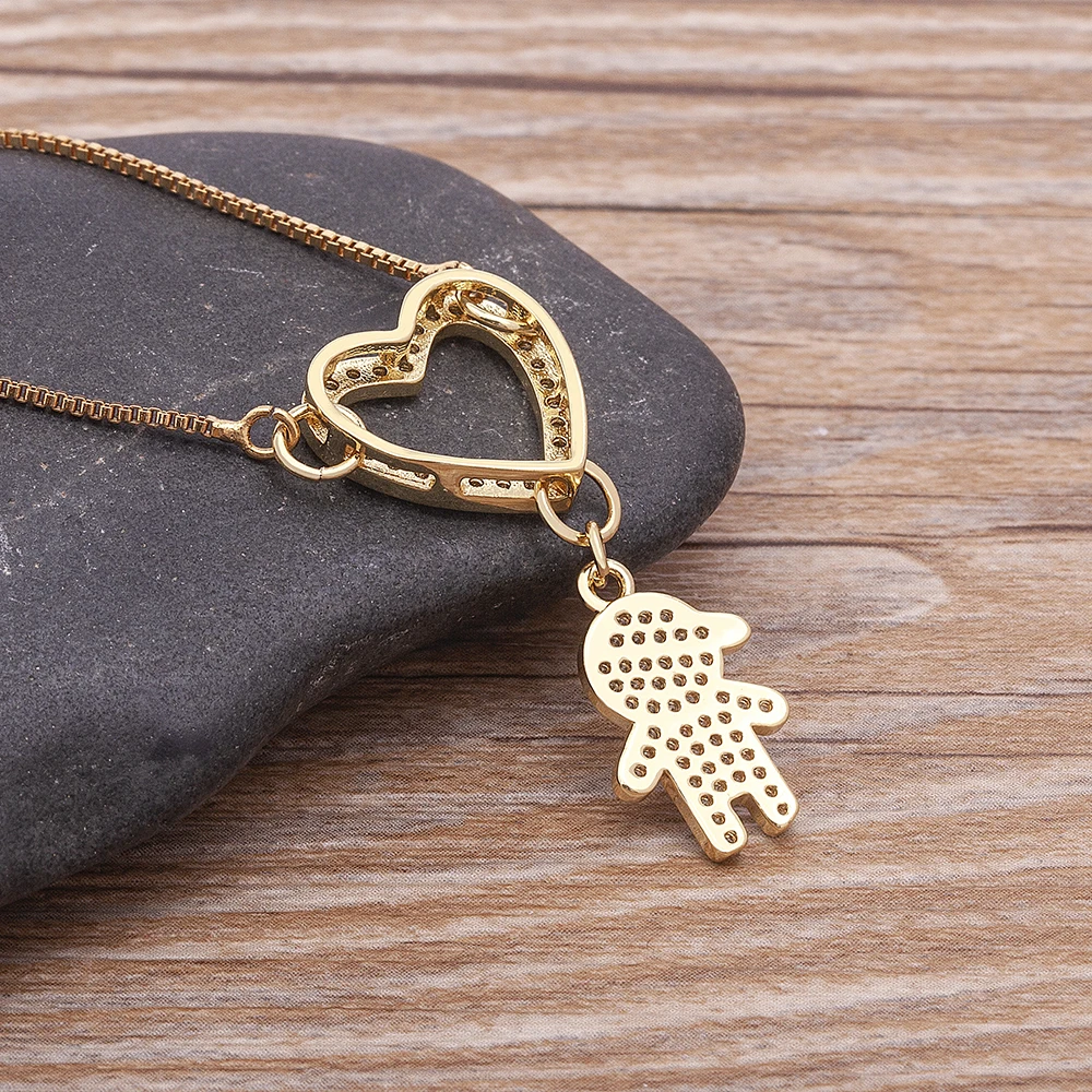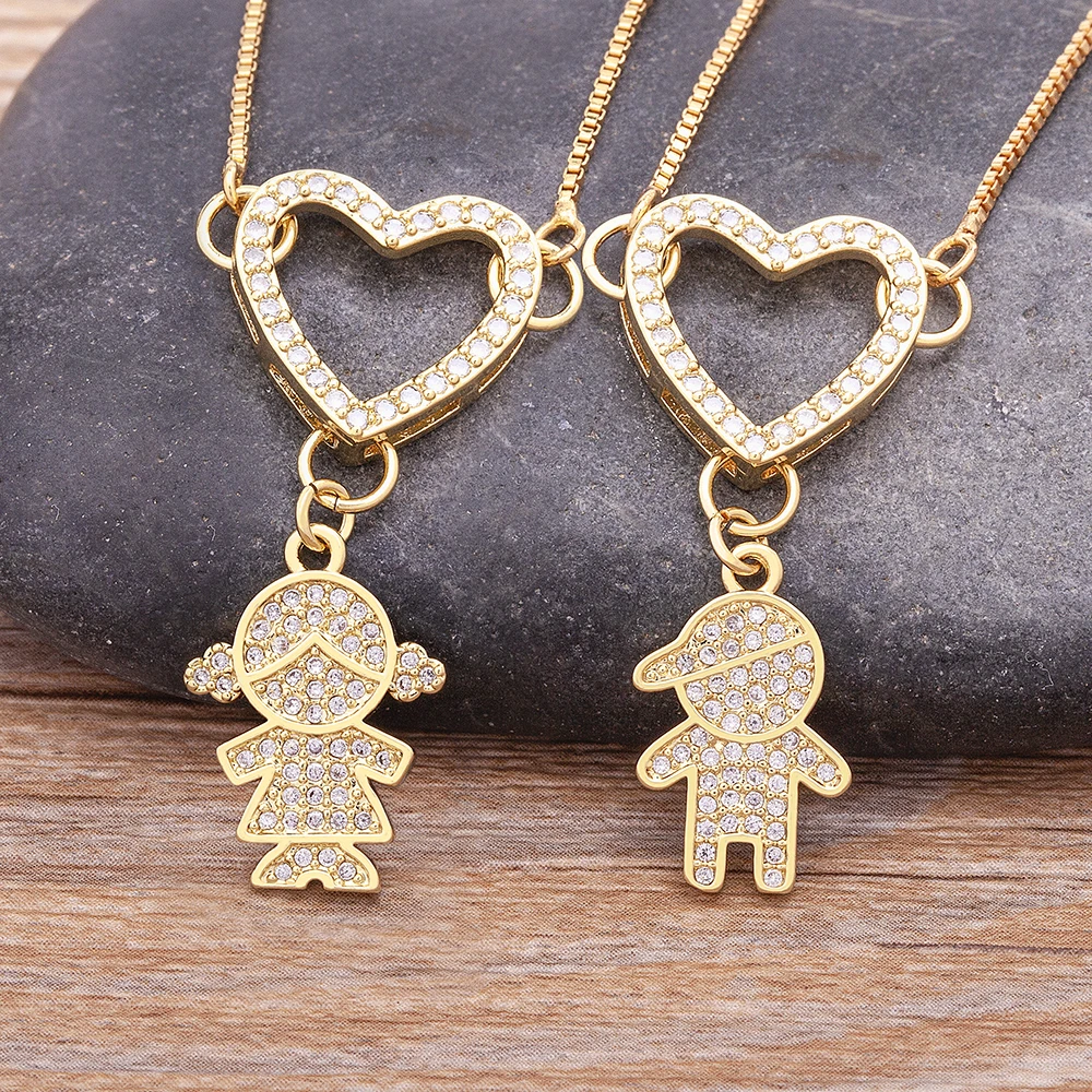 Роскошная подвеска в виде сердца для мальчиков и девочек, Золотое покрытое циркониевое ожерелье, Детская богемная Мода для женщин и девочек, ювелирные изделия для вечеринки и свадьбы, подарок