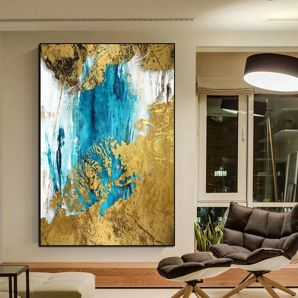 Абстрактная Роскошная Минималистичная синяя Золотая фольга картина ...