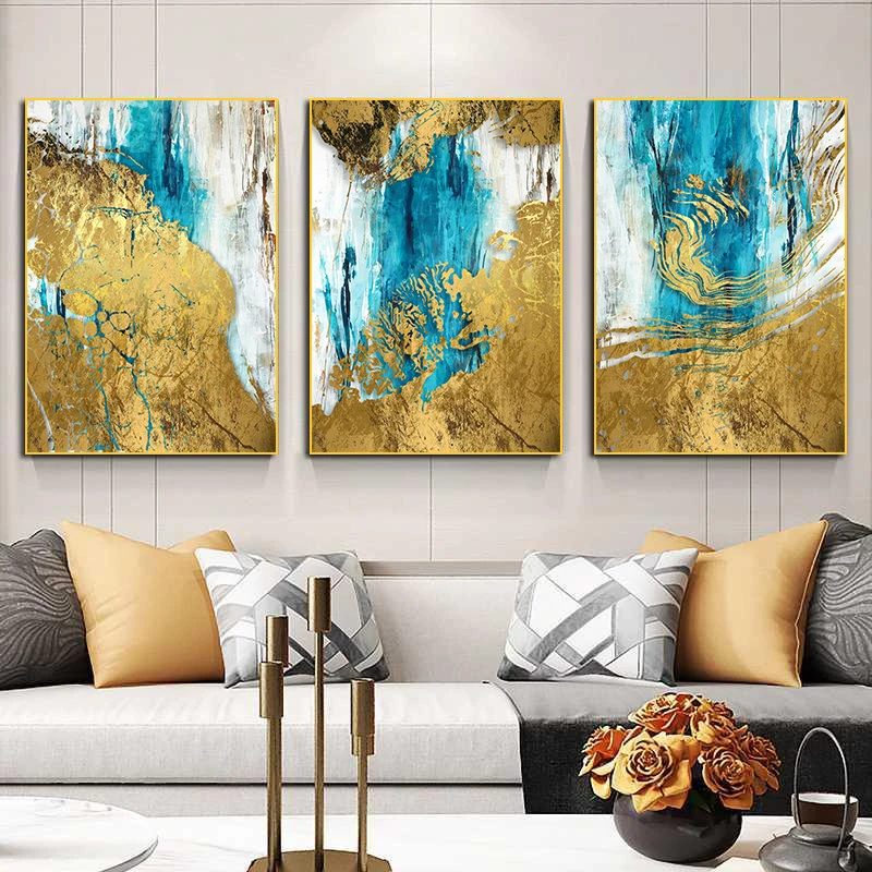 Модная Роскошная абстрактная Золотая фольга HD темно-синяя масляная Печать на холсте настенные художественные картины постер Куадрос гостиная украшение для дома
