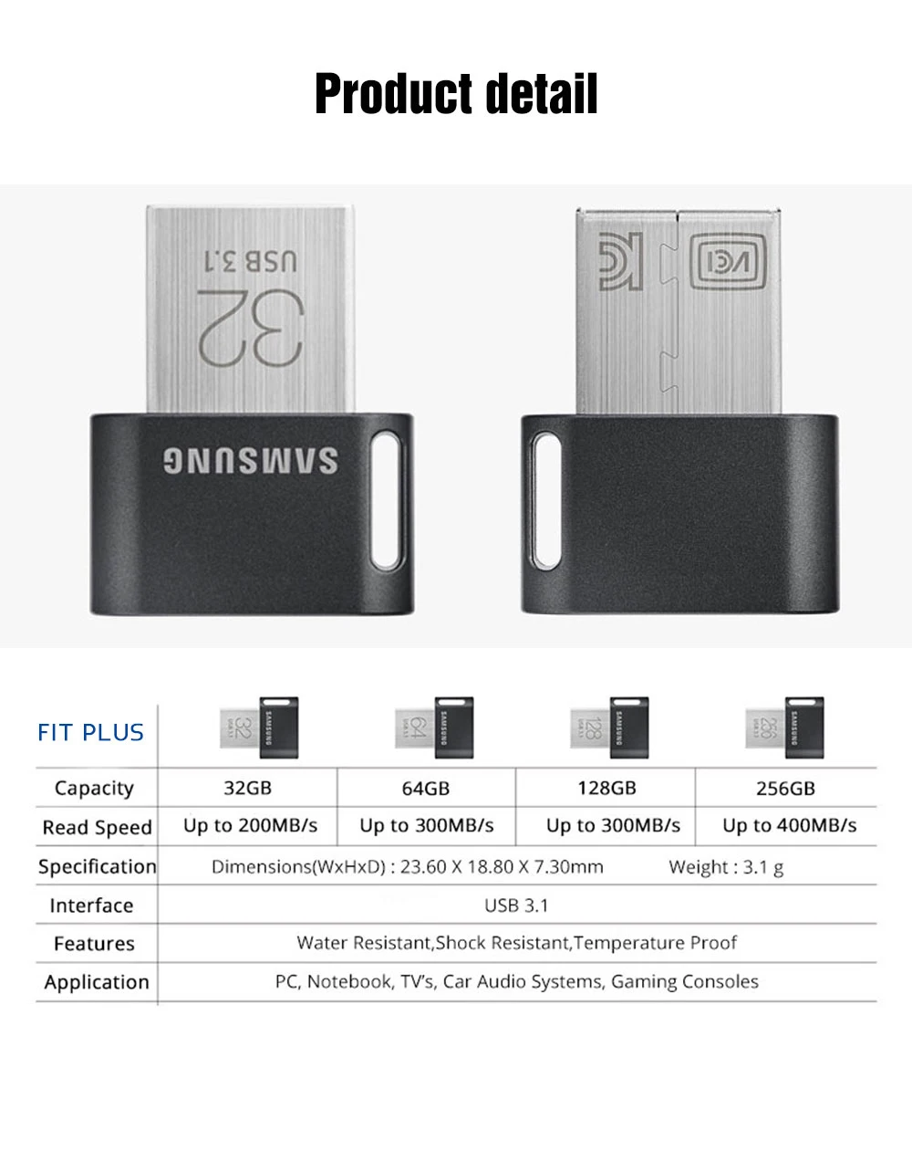 SAMSUNG USB флеш-накопитель, 128 ГБ, 64 ГБ, 256 ГБ, до 400 м