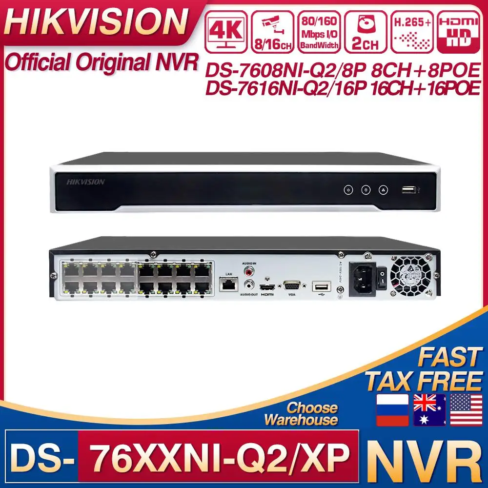 Hikvision NVR DS-7608NI-Q2/8P DS-7616NI-Q2/16P 8/16CH POE NVR 8MP 4K H.265 + 2 SATA для POE IPC сетевой видеорегистратор безопасности