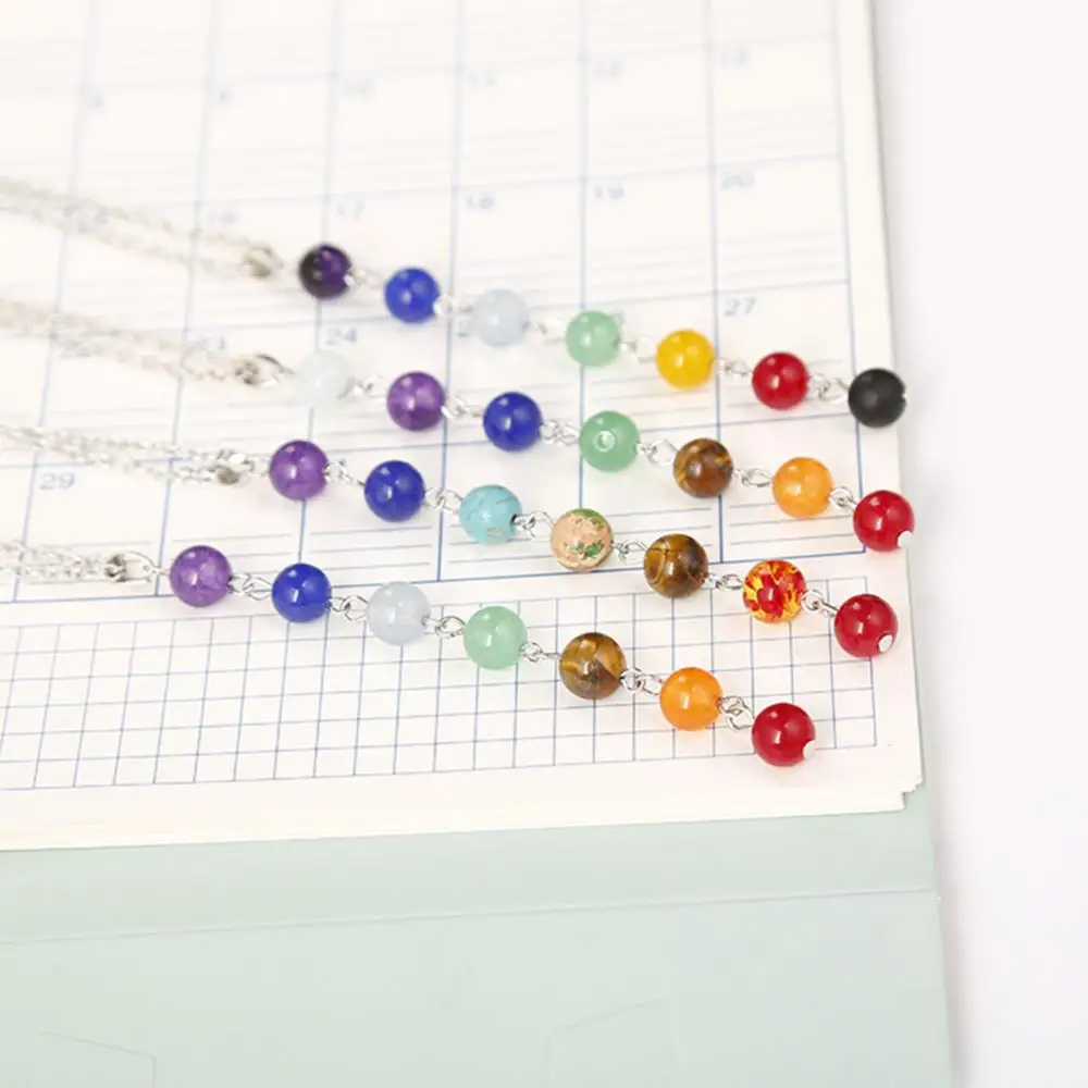 7 Чакр Красочные Бусины Длинное висячее ожерелье Йога балансировка камень ювелирные изделия подарок