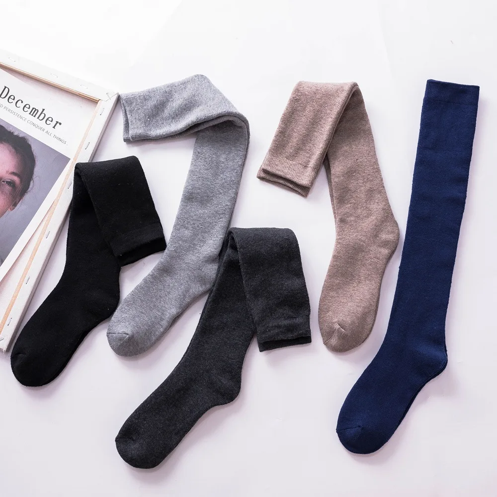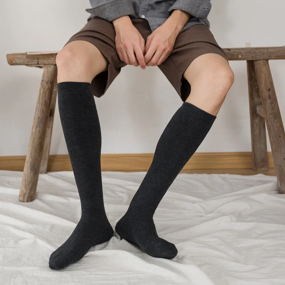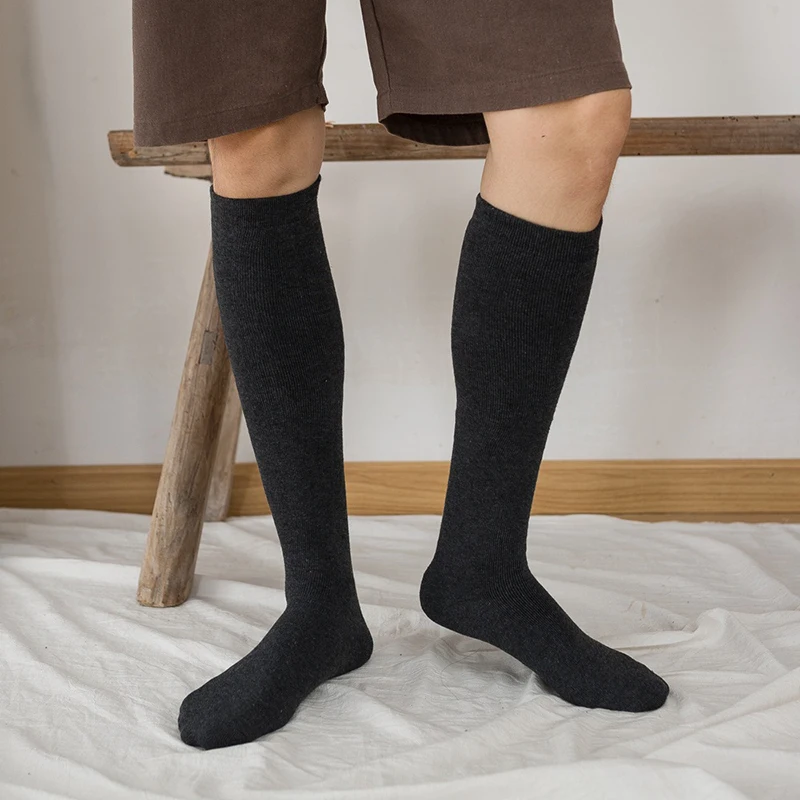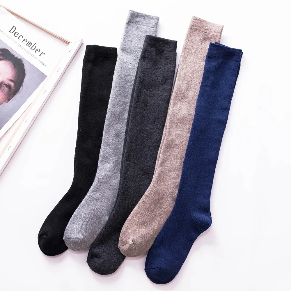 3 пары, толстые длинные чулки, мужские теплые носки до колена, однотонные зимние толстые махровые носки, мужские носки, женские мужские носки