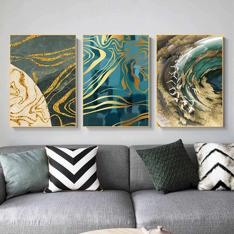 HD Роскошная абстрактная золотая линия сине-зеленая картина маслом ...