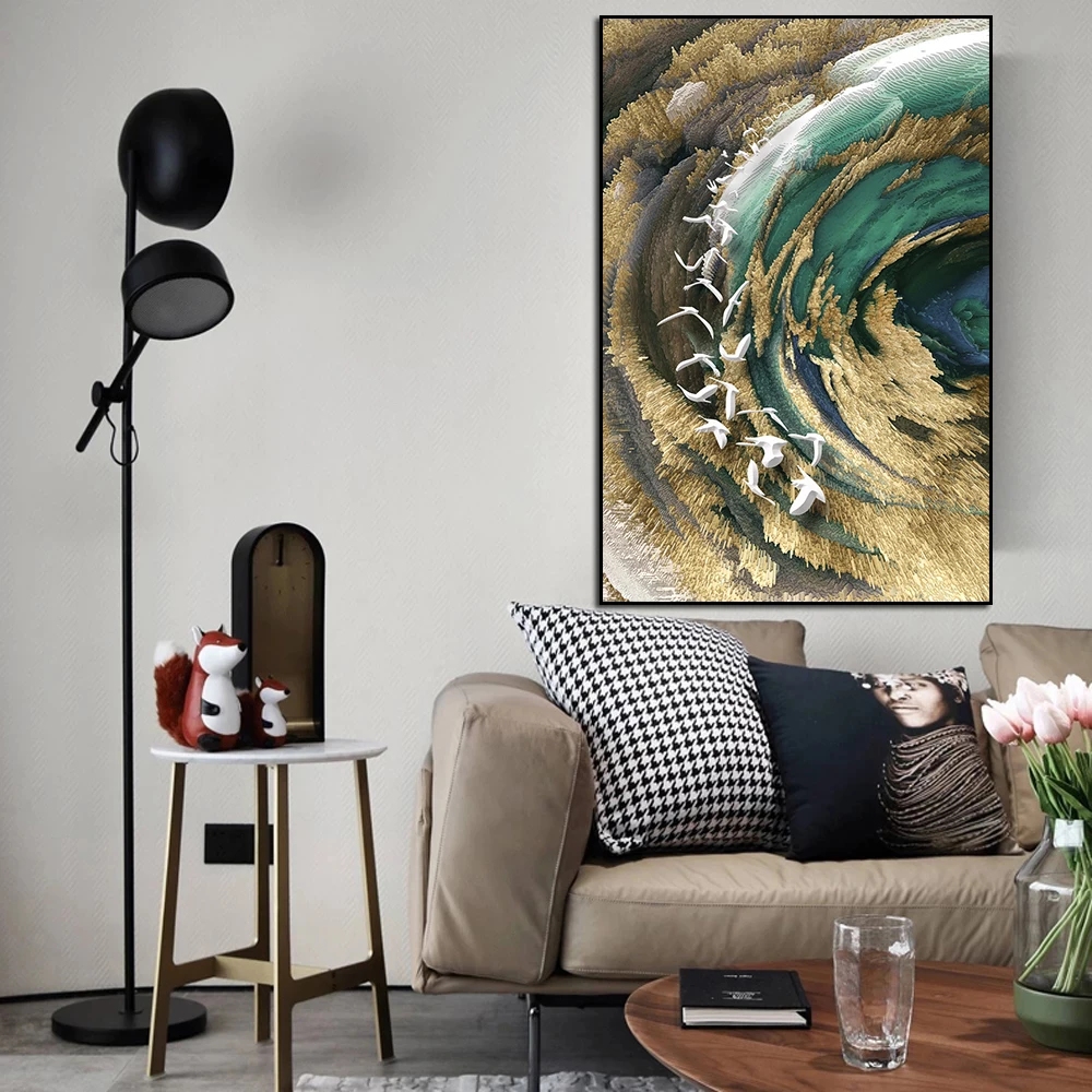 Абстрактная Роскошная Золотая Бабочка птица рыба зеленая Картина на...