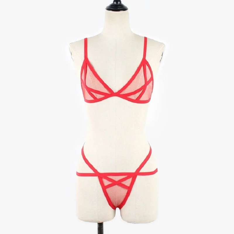 Сексуальное женское нижнее белье, привлекательный сетчатый бюстгальтер с тремя точками и бретельками, комплект нижнего белья из двух предметов