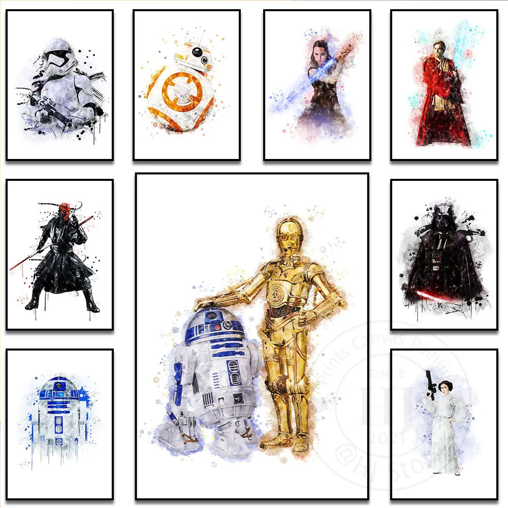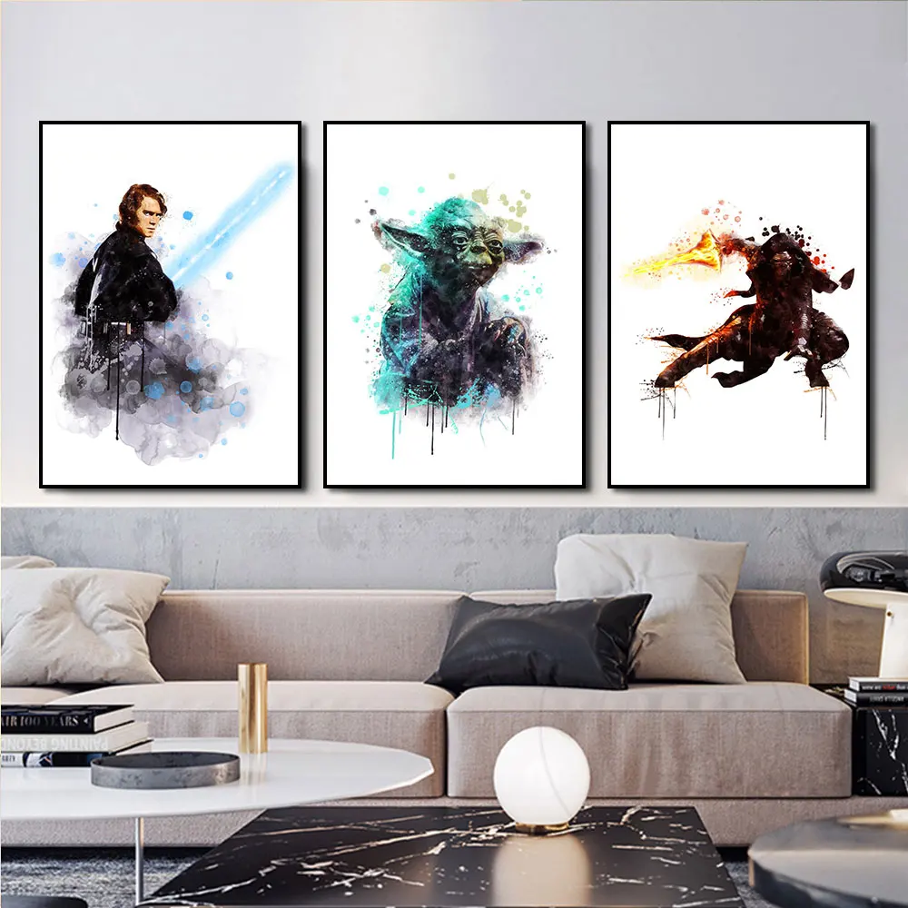 Disney Звездные войны Самурай йода акварель женский холст искусство картины украшение для дома