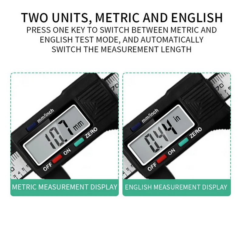 Особенности:<Дюйм и мм преобразование: одна кнопка быстрого переключения между двумя единицами: дюйм и миллиметр, этот цифровой суппорт использует Метрические/имперские единицы измерения, одна кнопка для переключения легко и быстро.<Нулевая Настройка: помогает установить ноль в любой момент при измерении, затем вы можете начать новое измерение.<Высококачественный материал: Изготовлен из пластикового материала, легкий, прочный и портативный.<Прозрачный ЖК-экран: большой и легко читаемый ЖК-дисплей позволяет быстро и легко получить точные результаты.<Многофункциональность: отлично подходит для домашнего/DIY измерения.<4 режима измерения: Этот цифровой суппорт может использоваться для измерения внутреннего и наружного диаметра, глубины и шага.<Мульти используется: наш цифровой суппорт хорошо работает для деревообработки, изготовления ювелирных изделий и многого другого.<Широкое применение: Может использоваться в бытовой, промышленной и автомобильной областях, отличный инструмент для механиков, инженеров, деревянных работников, любителей и многого другого.<Батарея управление: Он питается от LR44 1,5 V кнопочный элемент, легко заменить Батарея.