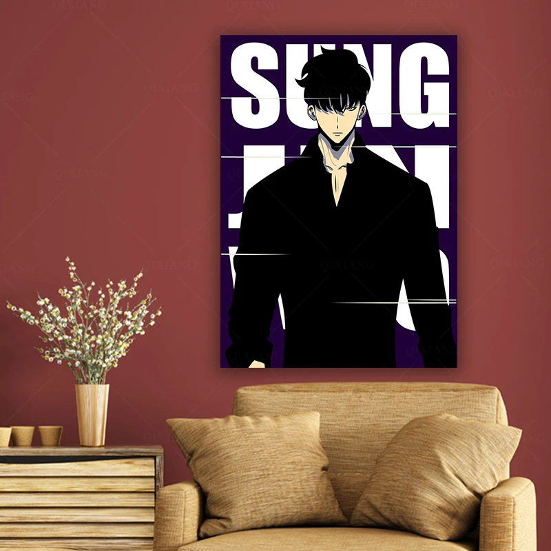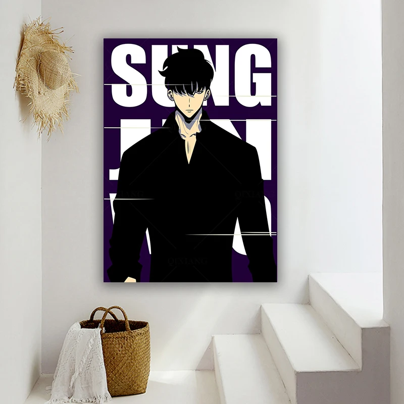 Sung jinwoo аниме соло выравнивание холст картина на стену искусств...