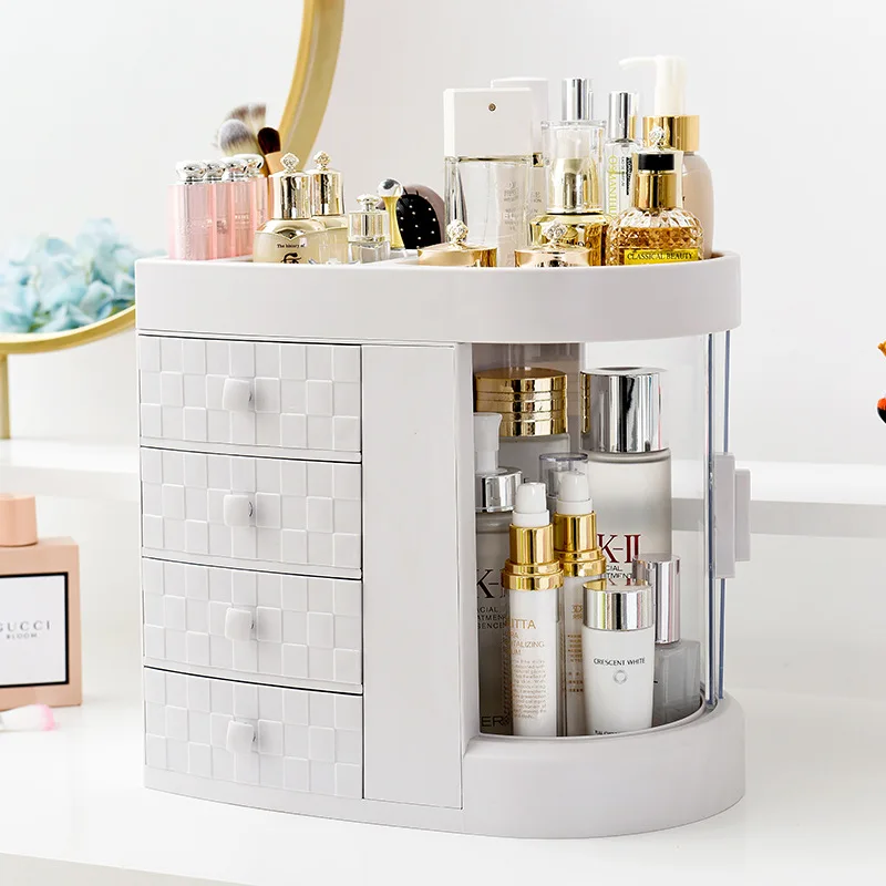 Прозрачный вращающийся Органайзер с 4 ящиками для хранения косметич...