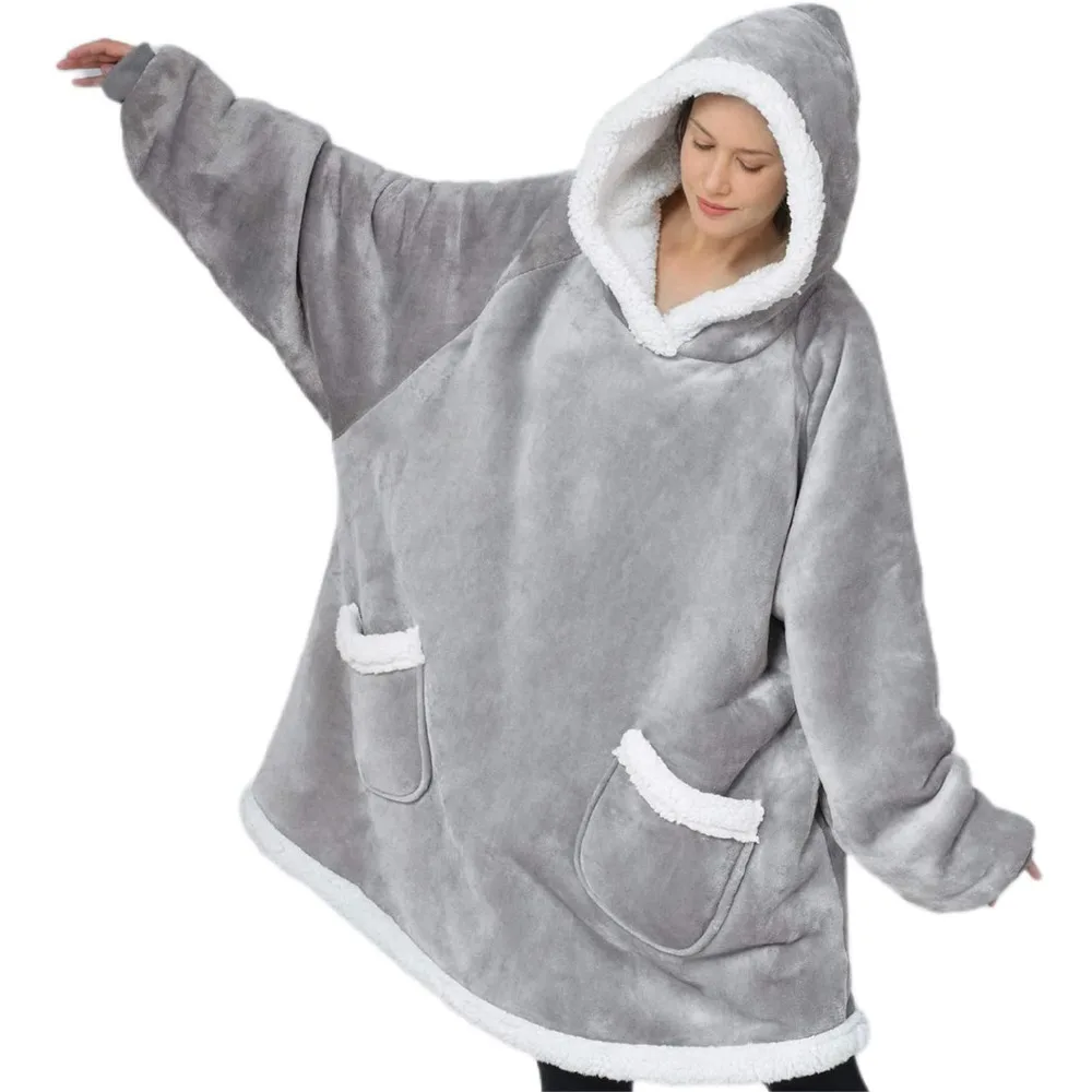HMSU длинный балахон одеяло для женщин гигантский Карманный плюшевый свитер женский оверсайз флисовое ТВ одеяло с рукавом теплая домашняя одежда