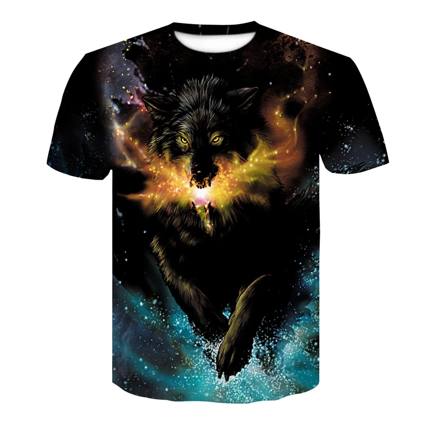 Мужская одежда, новинка 2020, крутая футболка с 3D принтом волка в стиле Харадзюку, мужскиеженские летние топы с коротким рукавом, футболки, модная футболка с животными