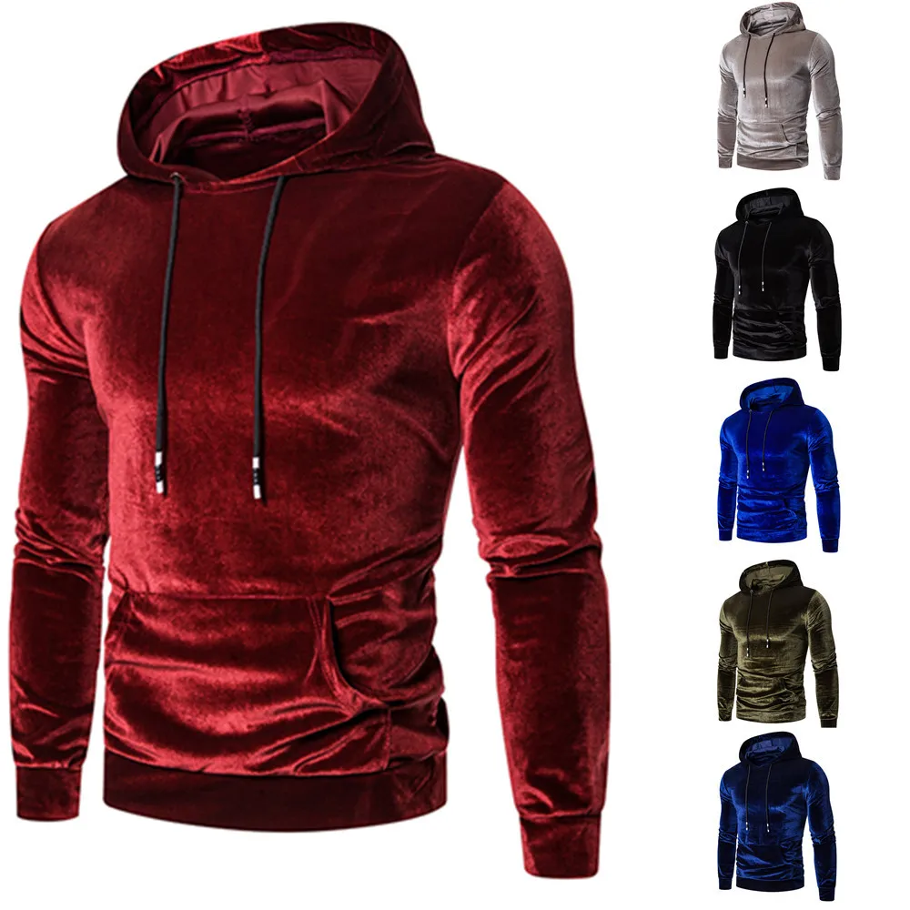 Бархатные велюровые толстовки винно-Красного цвета мужские свитшоты...