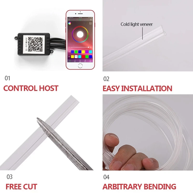 Автомобильная атмосферная лампа s EL, неоновая проволосветильник лента, RGB, несколько режимов, управление через приложение, декоративная неоновая лампа для салона автомобиля
