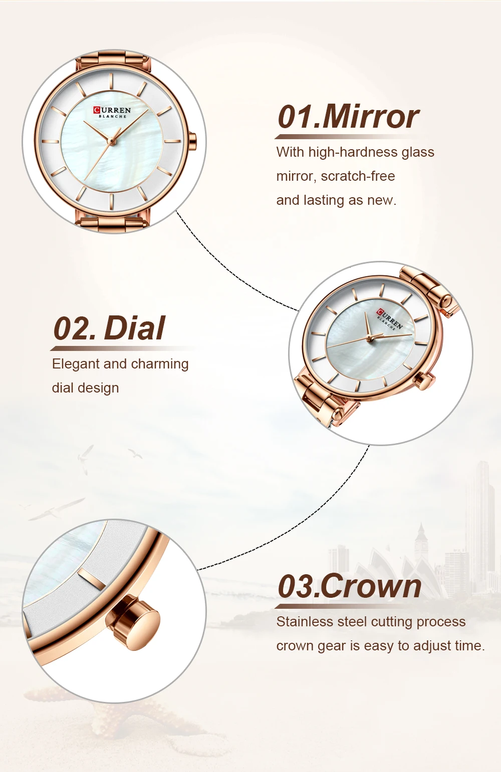 Часы CURREN женские кварцевые, роскошные брендовые водонепроницаемы...