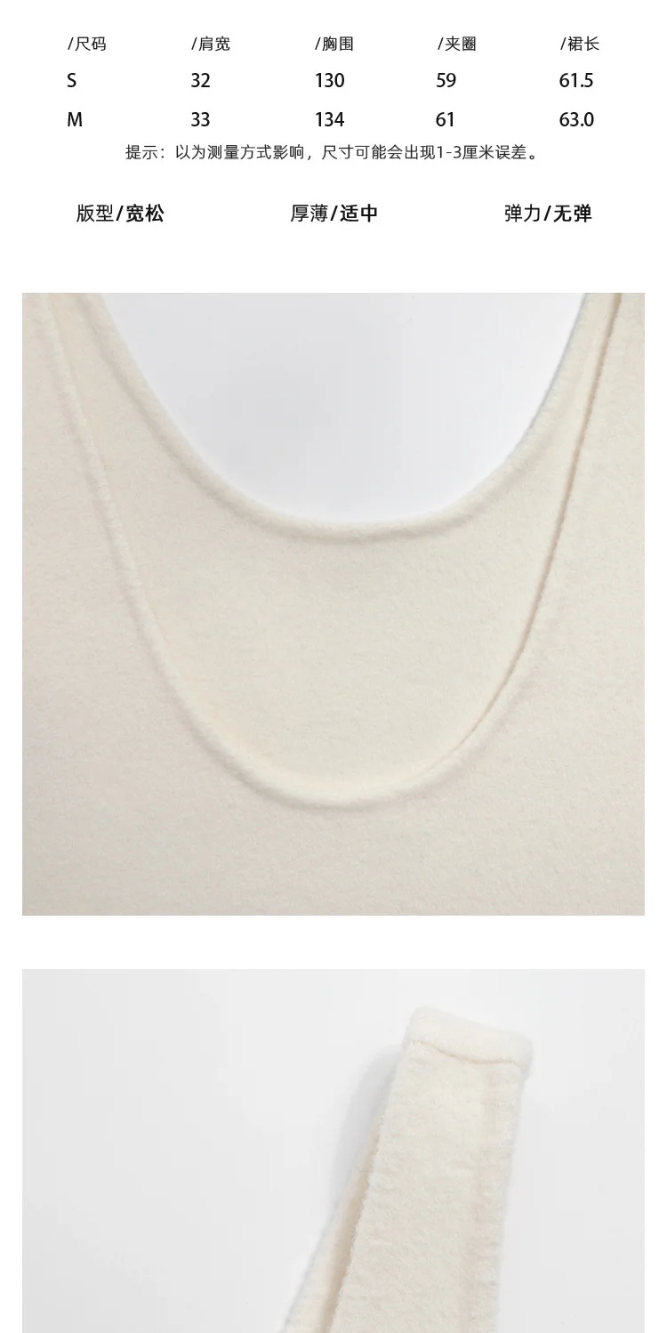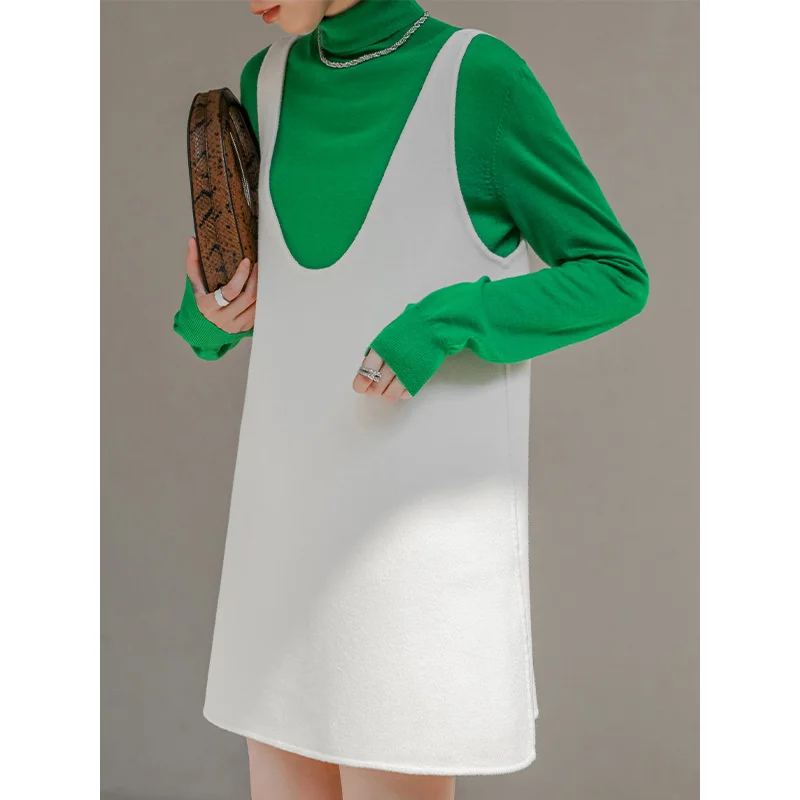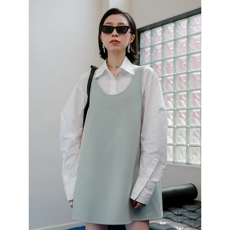 Colline2021 осеннее новое шерстяное платье с U-образным вырезом на бретелях, простое темпераментное двустороннее платье из никелевой стали, новинка 2019