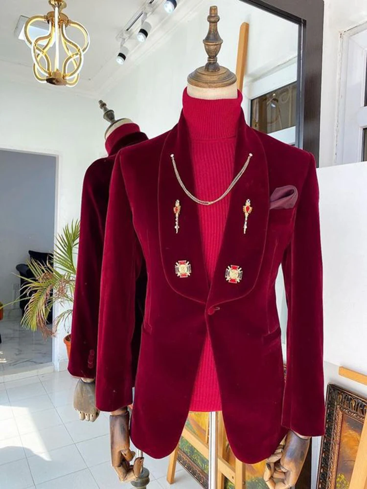 JELTONEWIN, бордовый Бархатный смокинг, женский костюм, брюки, шаль, лацкан, мужские костюмы для вечевечерние
