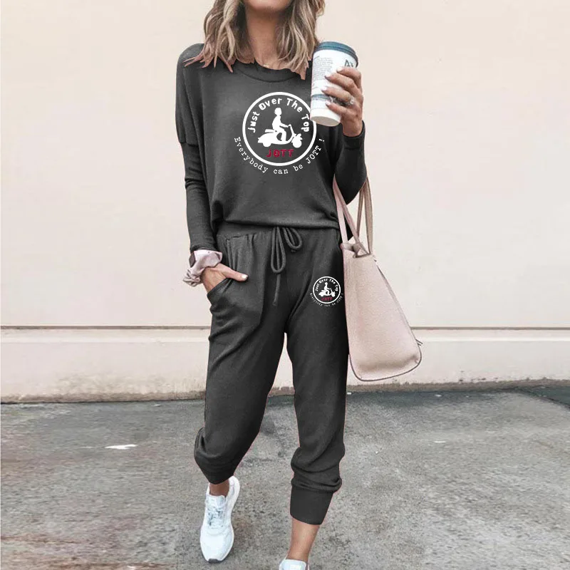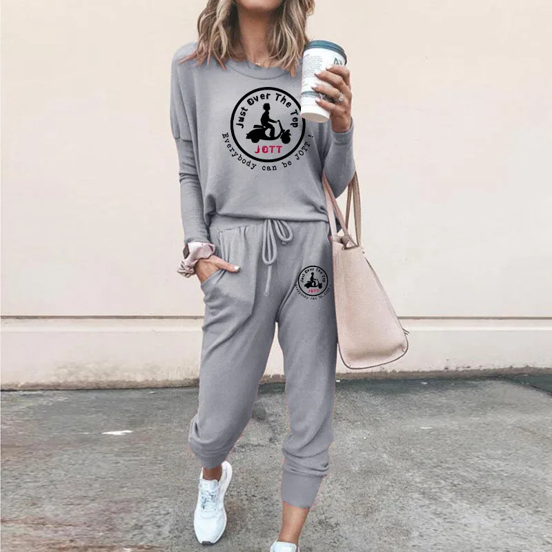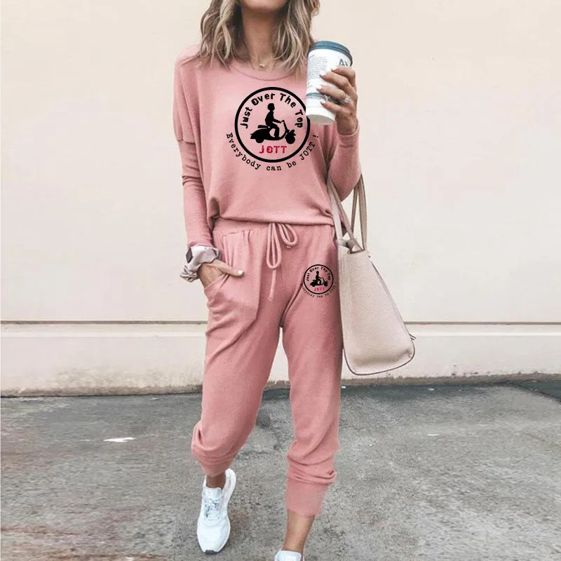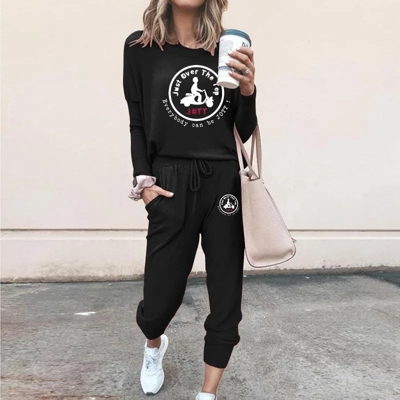 Женский зимний костюм с принтом JOTT, спортивный пуловер с трендовым рисунком из 2 предметов, однотонная Повседневная модная женская одежда, женский костюм