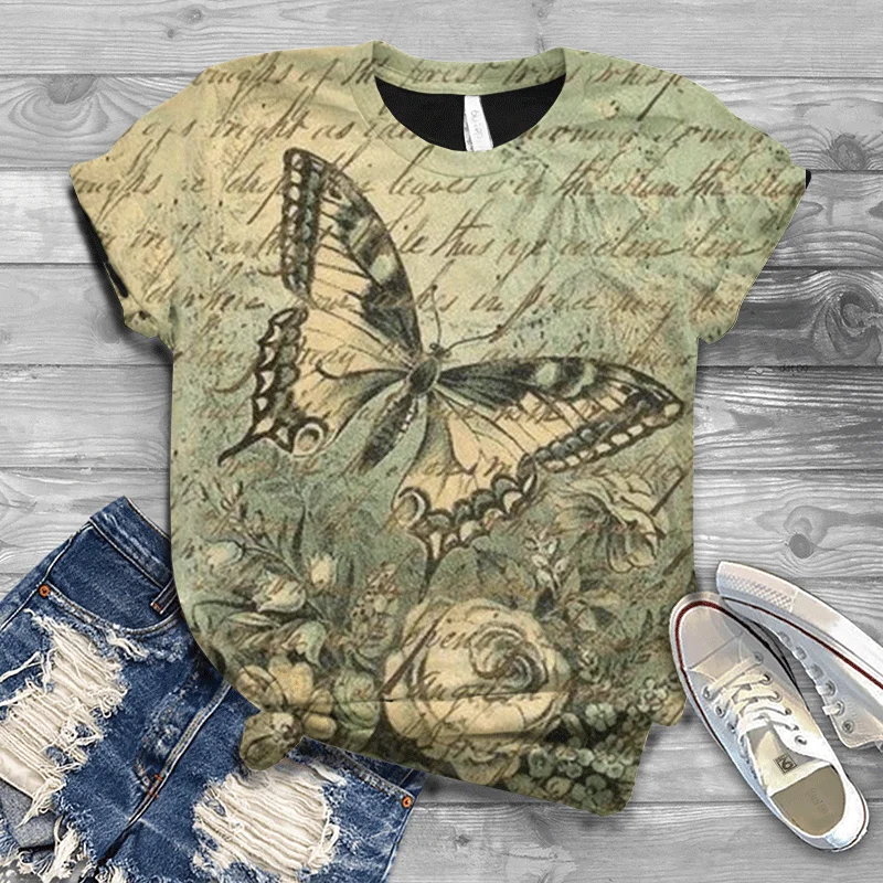 Футболка с 3D-принтом бабочки, мужская и женская городская одежда, Женский Повседневный Спортивный Топ для фитнеса с короткими рукавами и животными, 2021