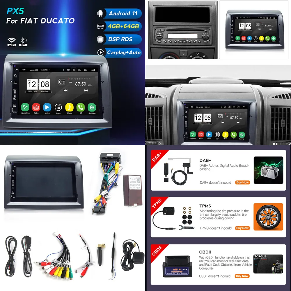 Головное устройство Carplay 2 Din Android 11 видеоплеер для Fiat Ducato 2006 + GPS аудио автомобильный радиоприемник мультимедийный стерео головное устройство