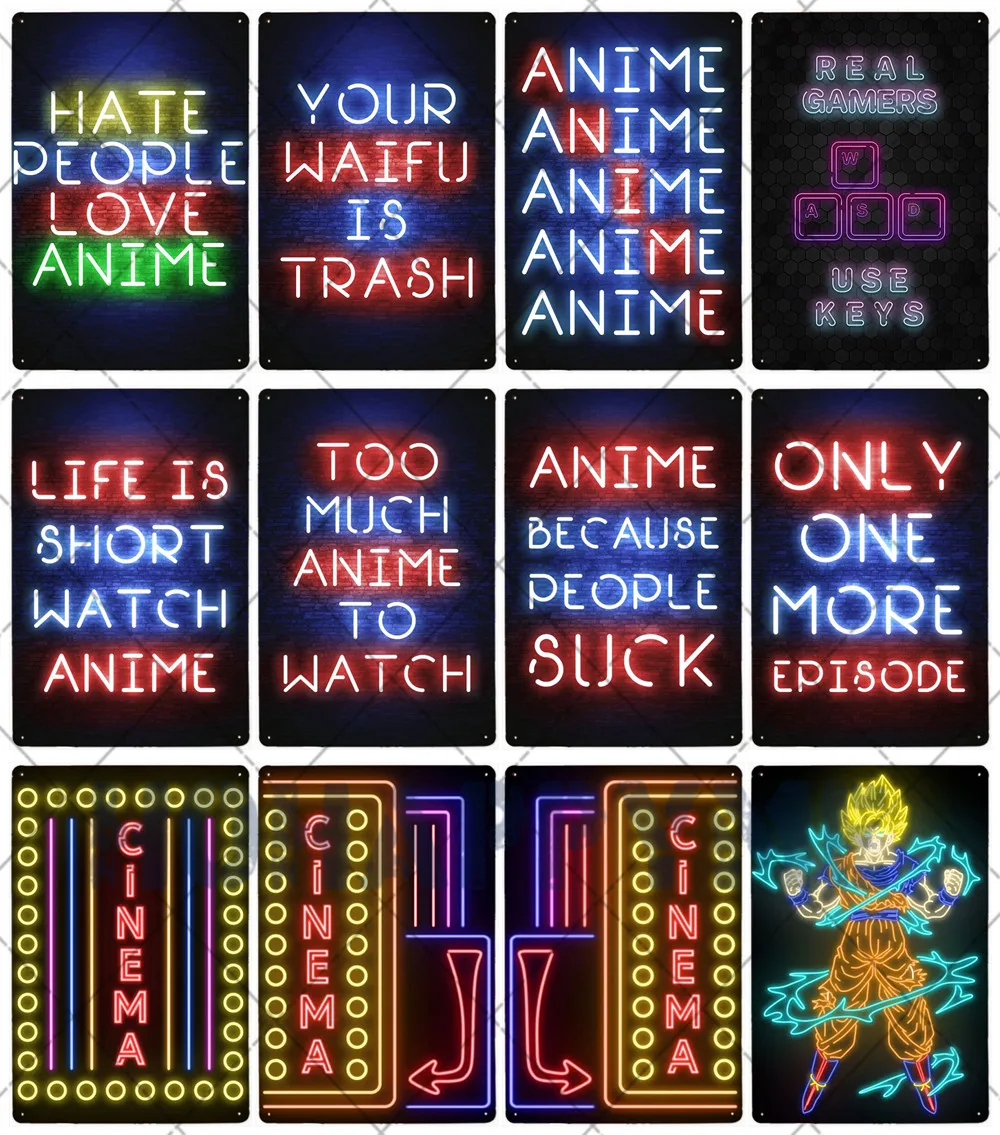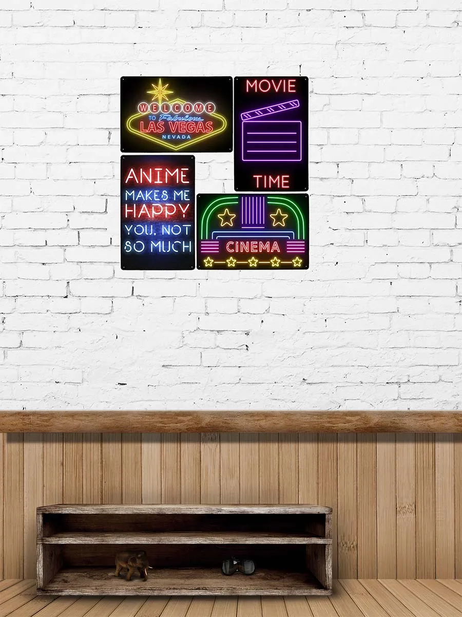 Неоновые металлические таблички для кинотеатра, Декоративные плакаты для кинотеатра, аниме, игровой комнаты, бара, клуба, Настенный декор, Современный художественный плакат 20x30 см