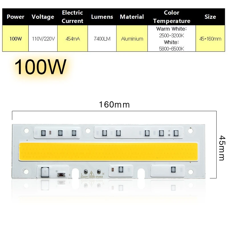 100 Вт 160 лм светодиодные чипы теплыйбелый 45X220 мм Прямоугольный DIY COB LED чип лампочка шарик для прожектора AC110в